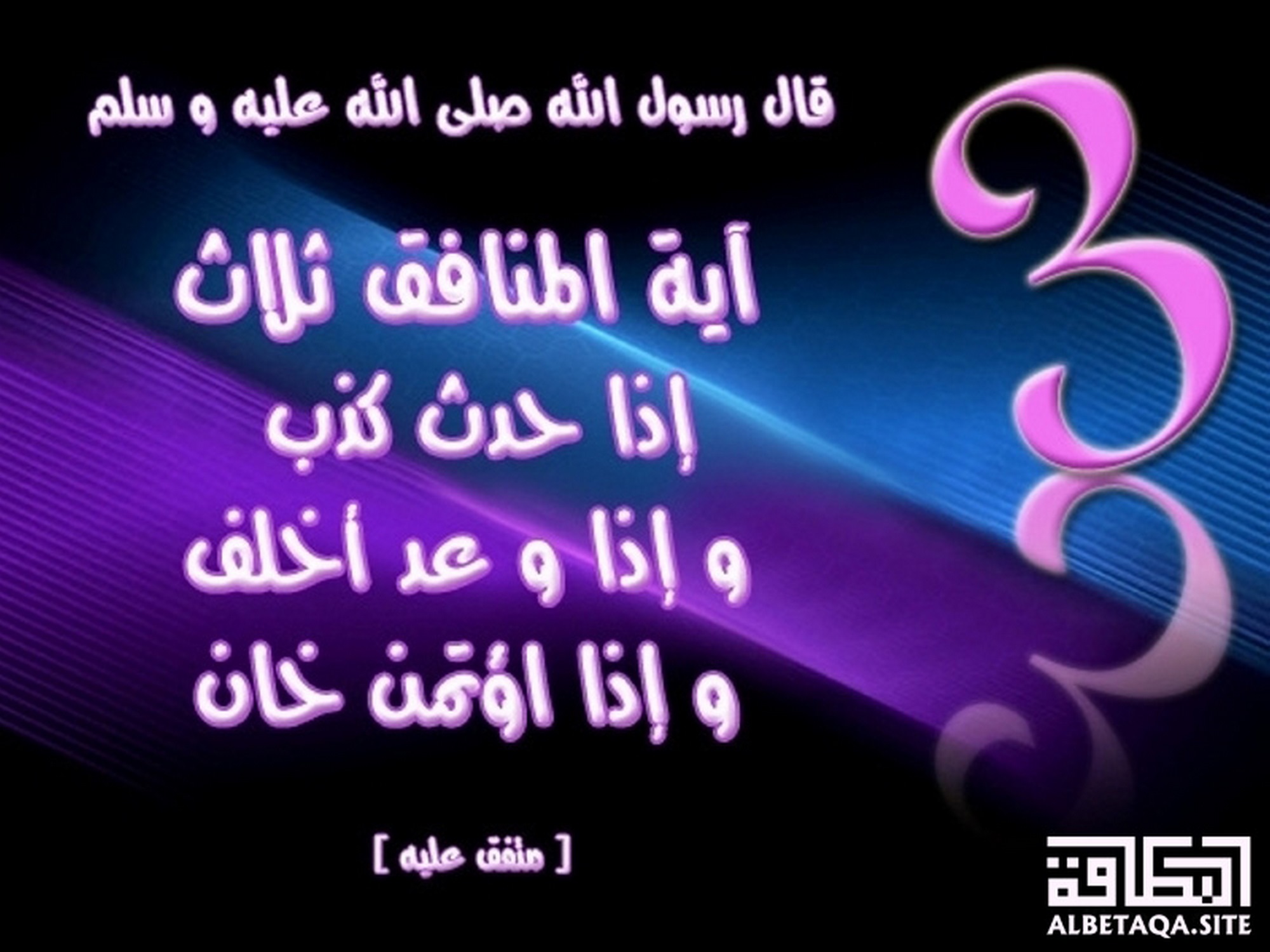 (آية المنافق ثلاث إذا حدث كذب وإذا وعد أخلف وإذا اؤتمن خان). متفق عليه