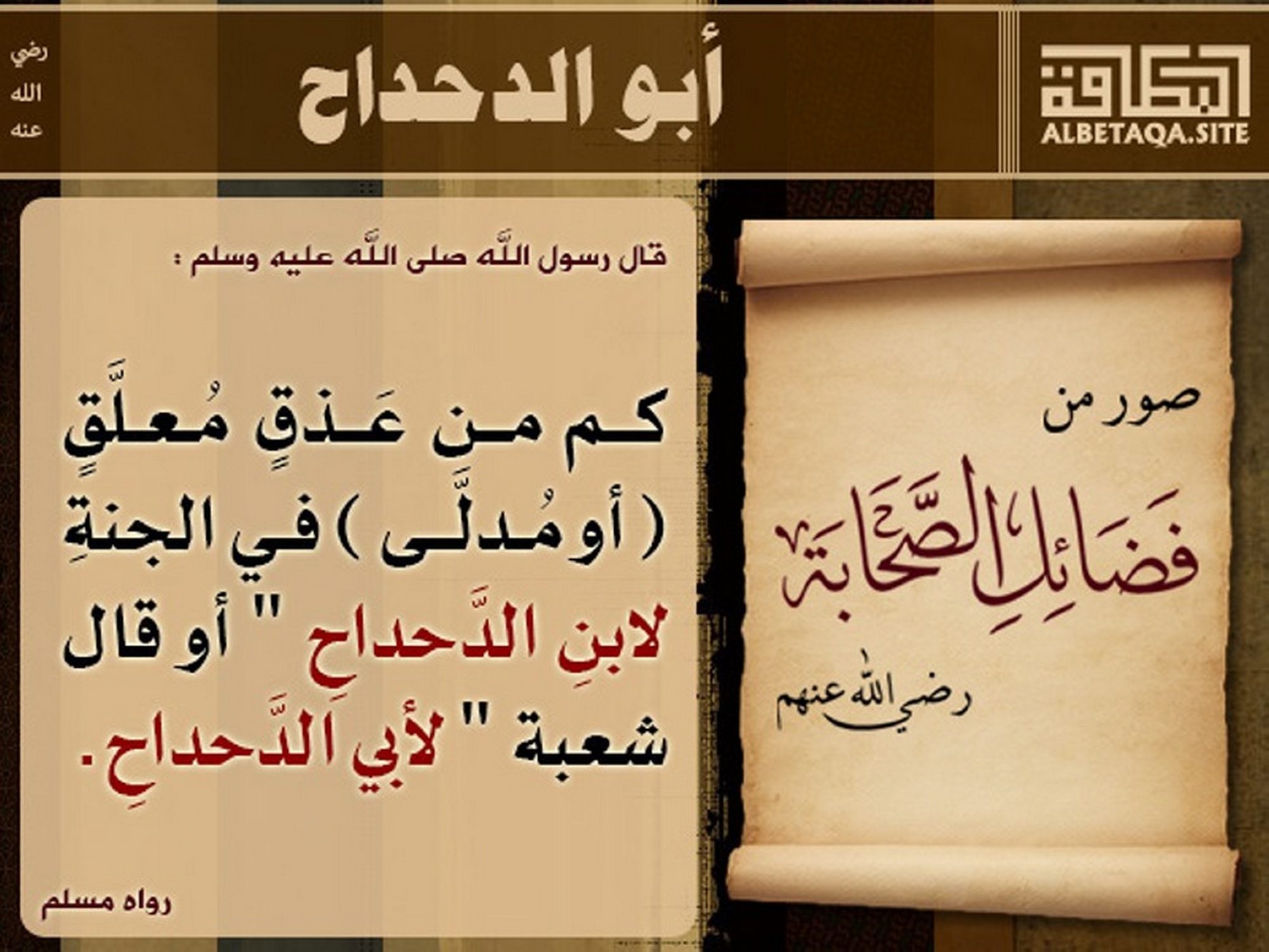(كم من عذق معلق (أو مدلى) في الجنة لابن الدحداح ”أو قال شعبة” لأبي الدحداح). رواه مسلم