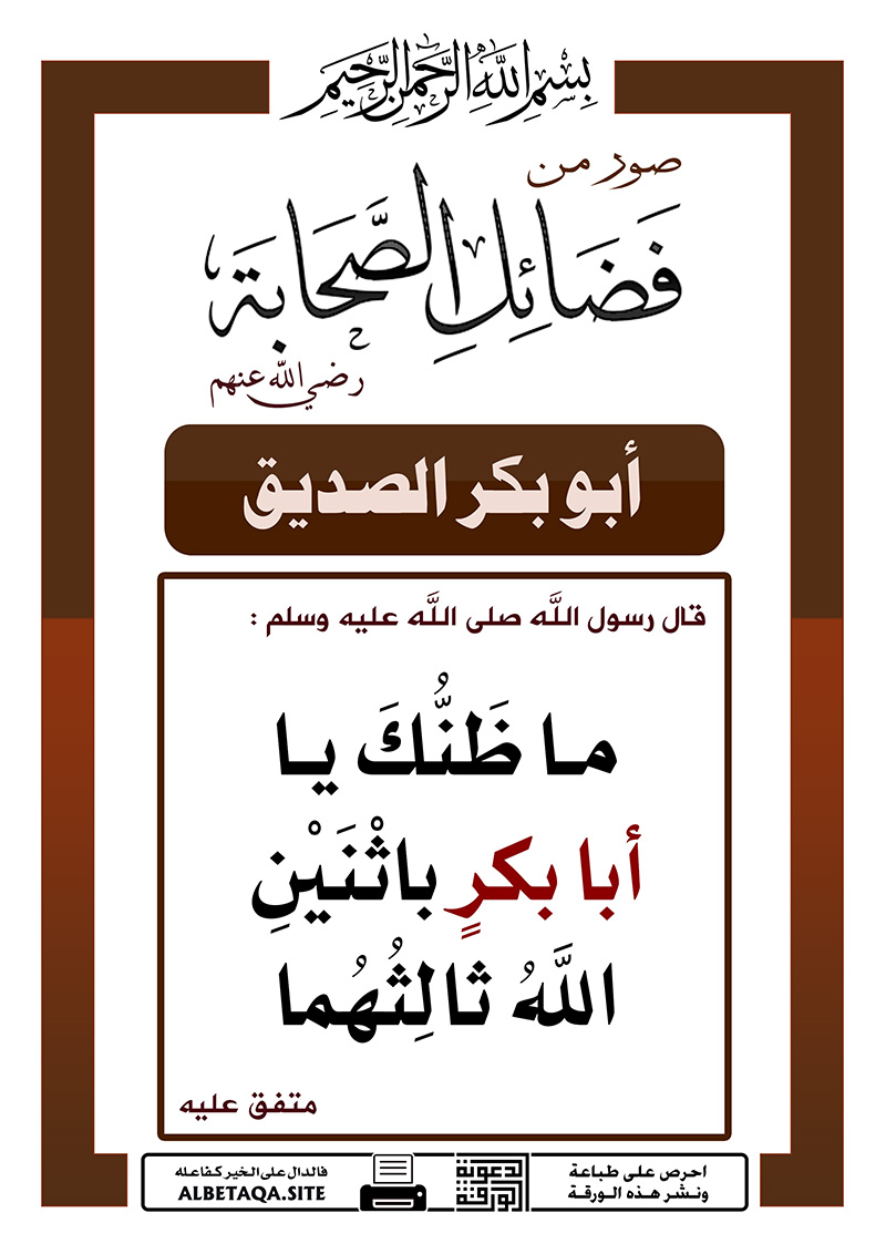 (ما ظنك يا أبا بكر باثنين الله ثالثهما). متفق عليه