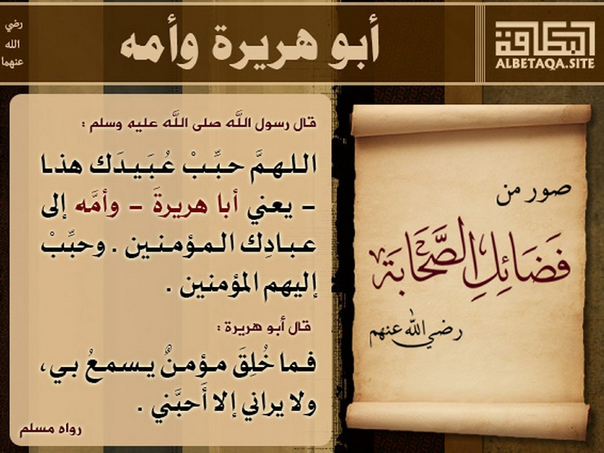 (اللهم حبب عبيدك هذا –يعني أبا هريرة– وأمه إلى عبادك المؤمنين. وحبب إليهم المؤمنين. قال أبو هريرة: فما خلق مؤمن يسمع بي، ولا يراني، إلا أحبني). رواه مسلم