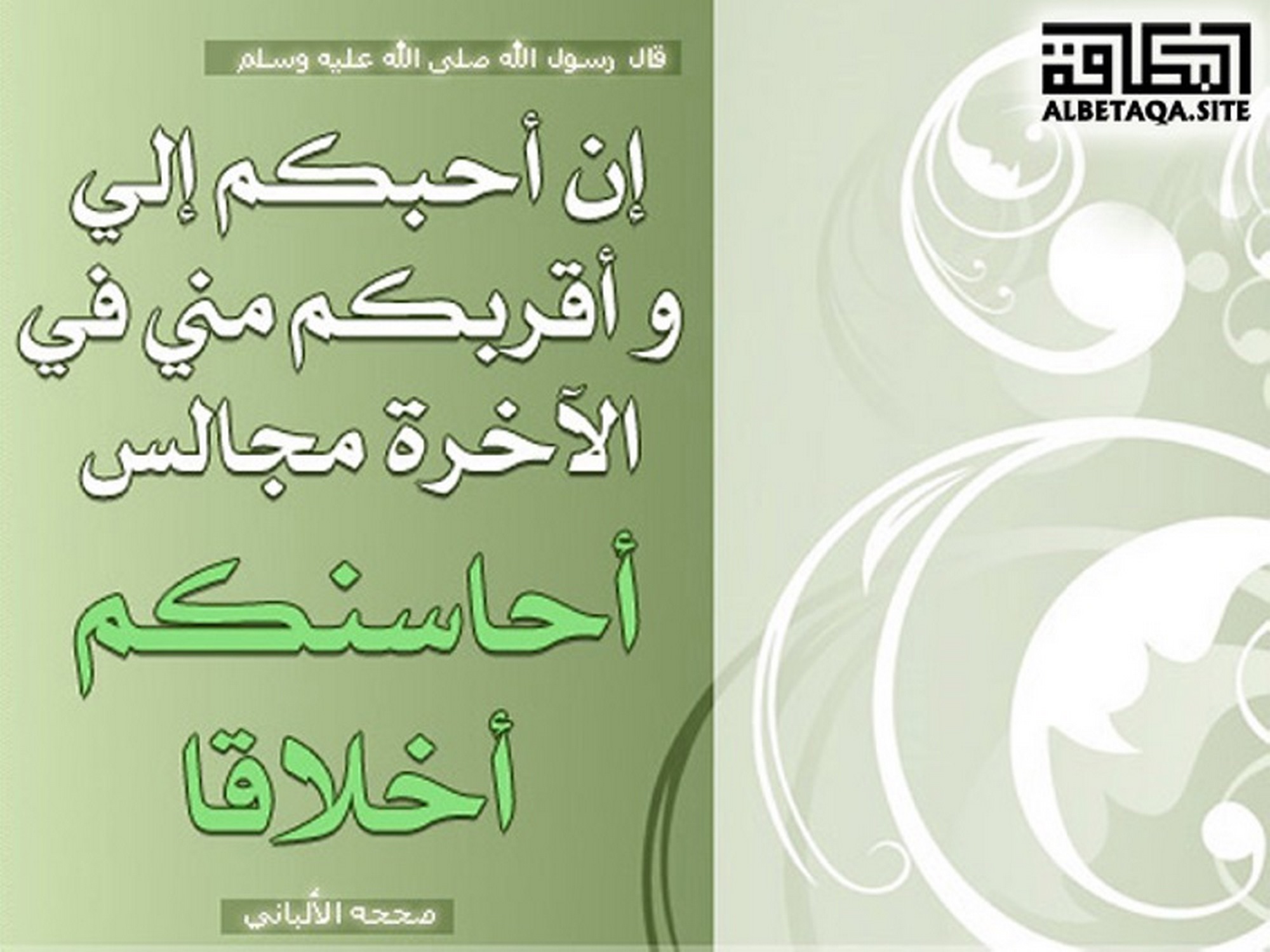 (إن أحبكم إلي وأقربكم مني في الآخرة مجالس أحاسنكم أخلاقا). صححه الألباني
