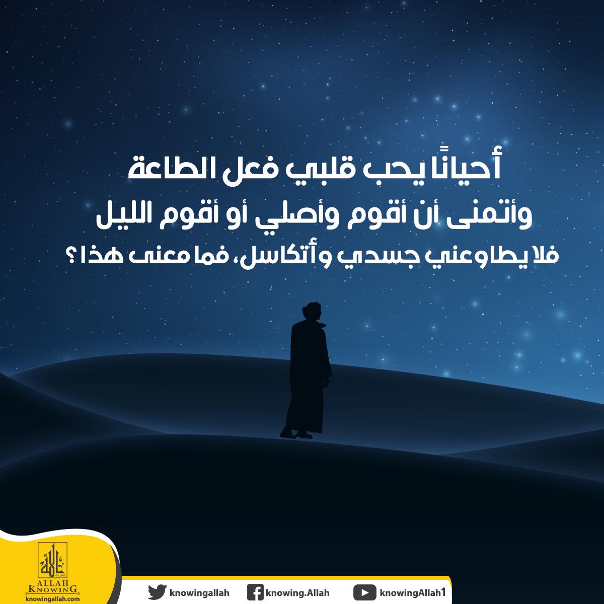 س: أحيانًا يحب قلبي فعل الطاعة وأتمنى أن أقوم وأصلي أو أقوم الليل، فلا يطاوعني جسدي وأتكاسل، فما معنى هذا؟