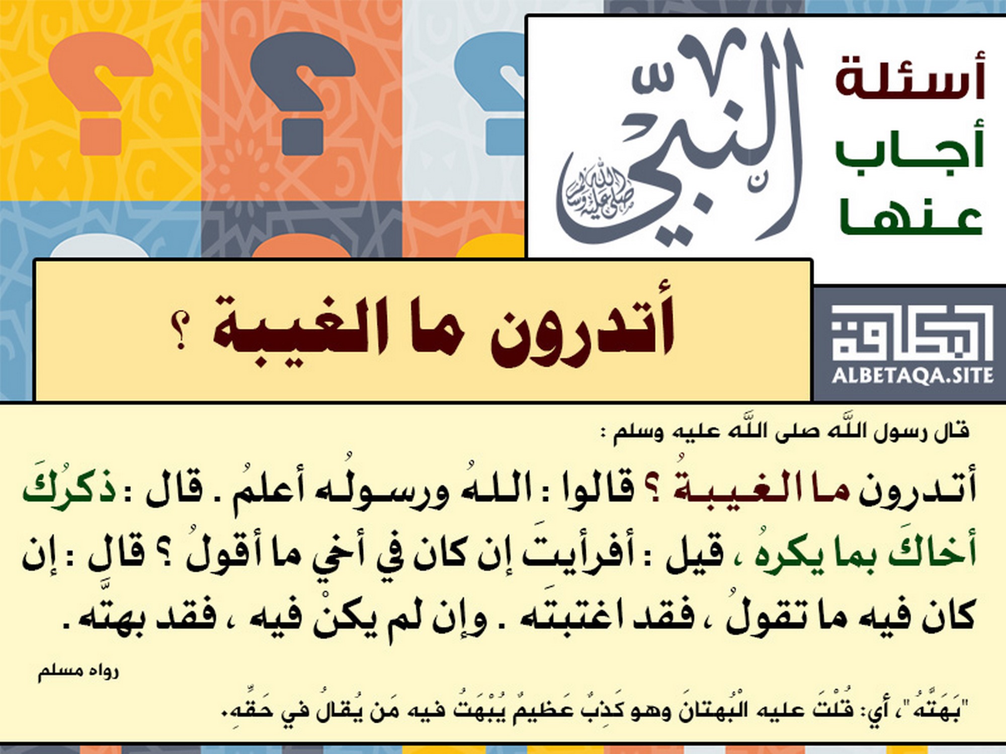 أسئلة أجاب عنها النبي صلى الله عليه وسلم - أتدرون ما الغيبة؟