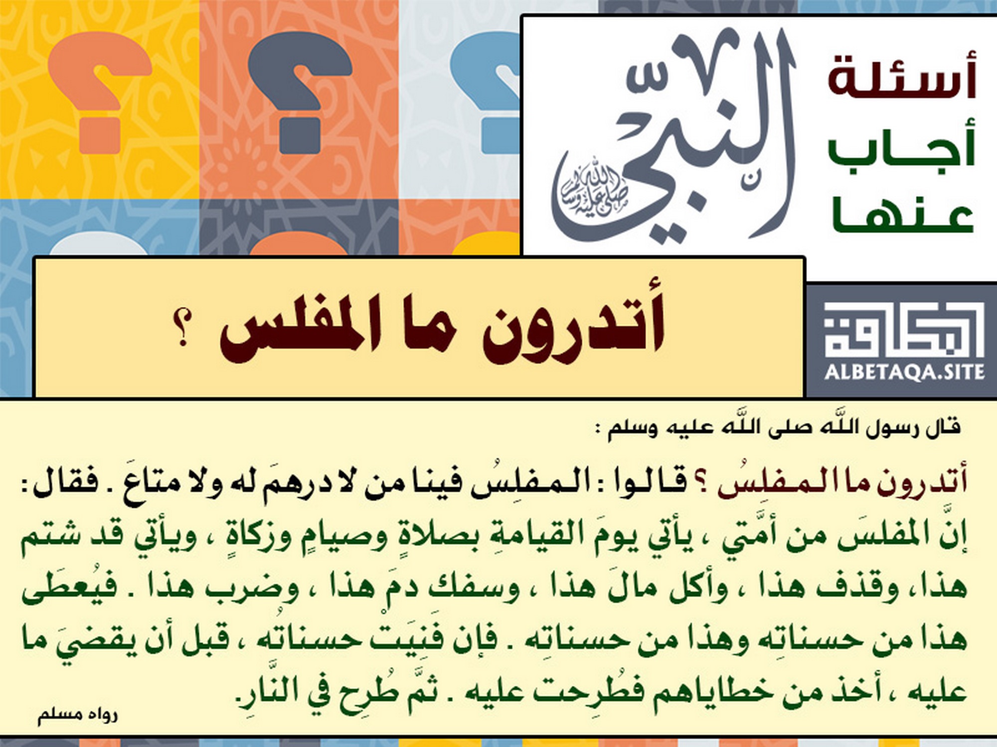 أسئلة أجاب عنها النبي صلى الله عليه وسلم - أتدرون ما المفلس؟