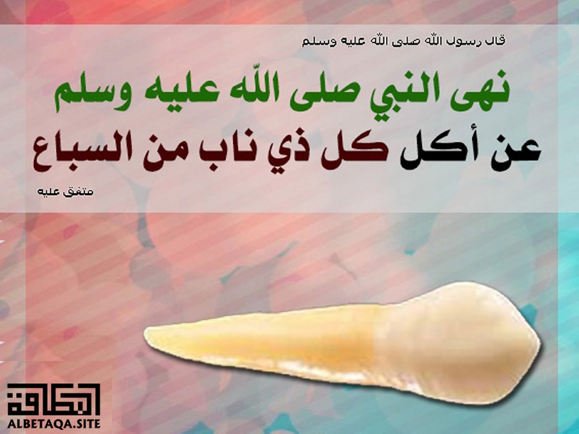 (نهى النبي صلى الله عليه وسلم عن أكل كل ذي ناب من السباع). متفق عليه