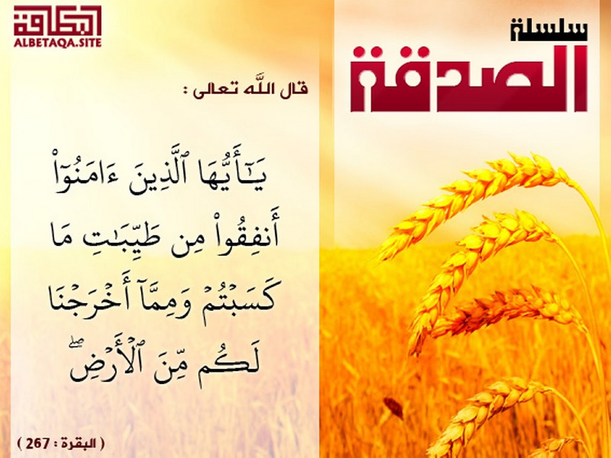 (يا أيها الذين آمنوا أنفقوا من طيبات ما كسبتم ومما أخرجنا لكم من الأرض). (البقرة: 267)