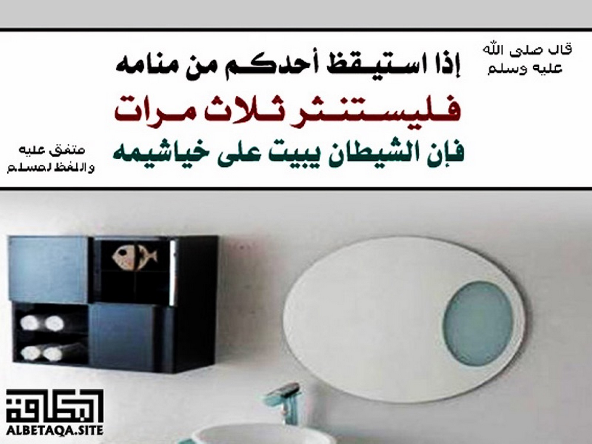 (إذا أستيقظ أحدكم من منامه فليستنثر ثلاث مرات فإن الشيطان يبيت على خياشيمه). متفق عليه واللفظ لمسلم