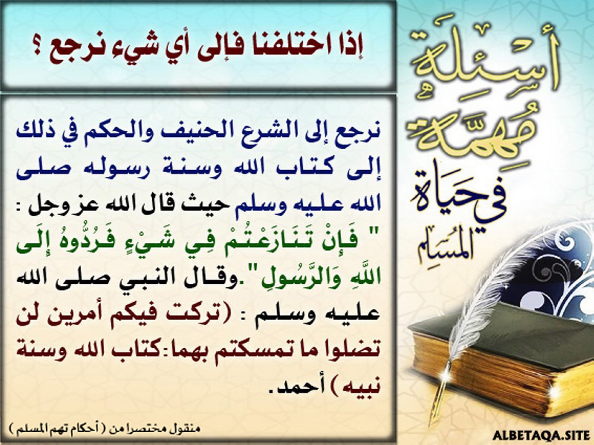 أسئلة مهمة في حياة المسلم – إذا اختلفنا فإلى أي شيء نرجع؟