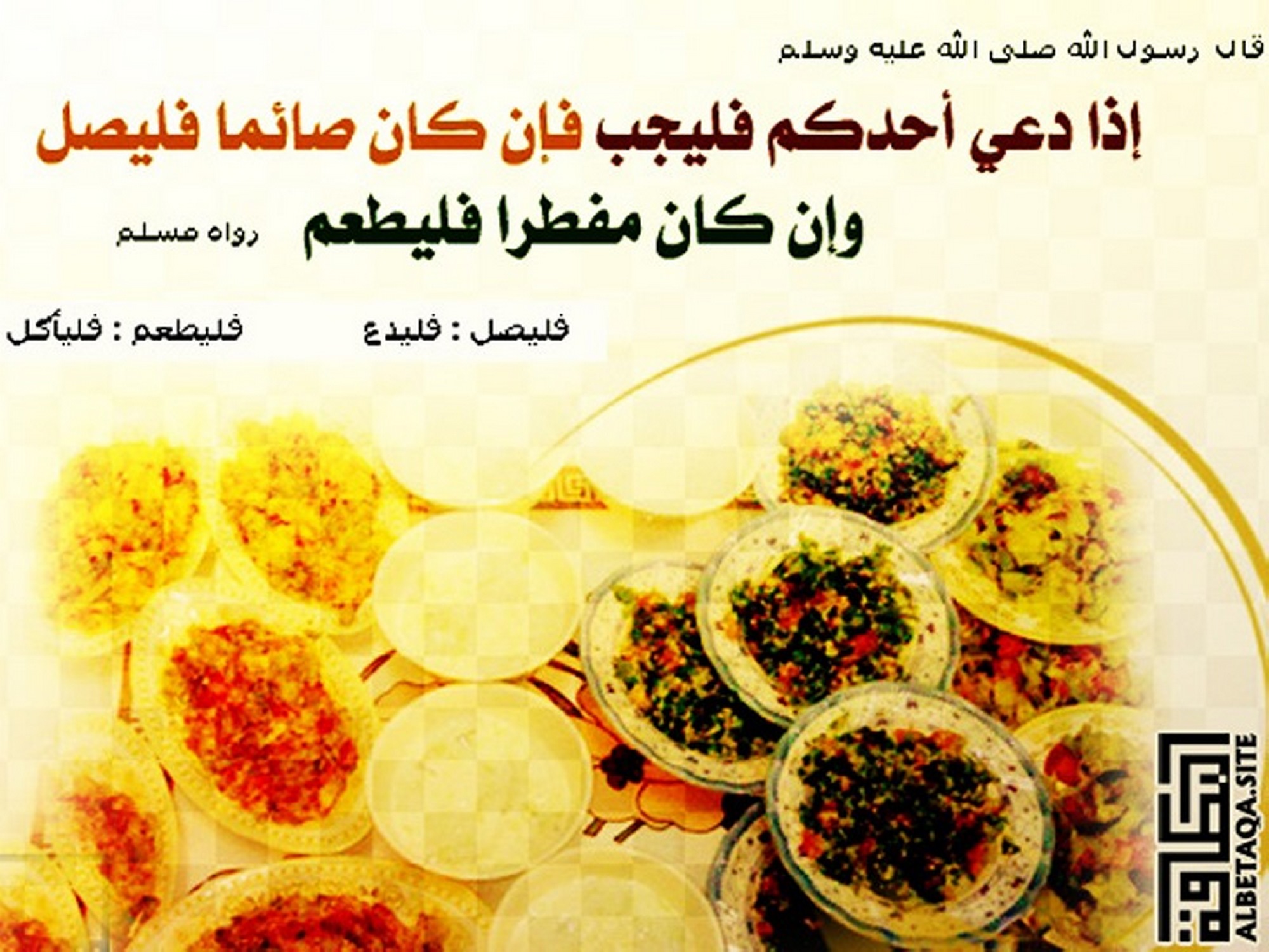 (إذا دعي أحدكم فليجب فإن كان صائما فليصل وإن كان مفطرا فليطعم). رواه مسلم