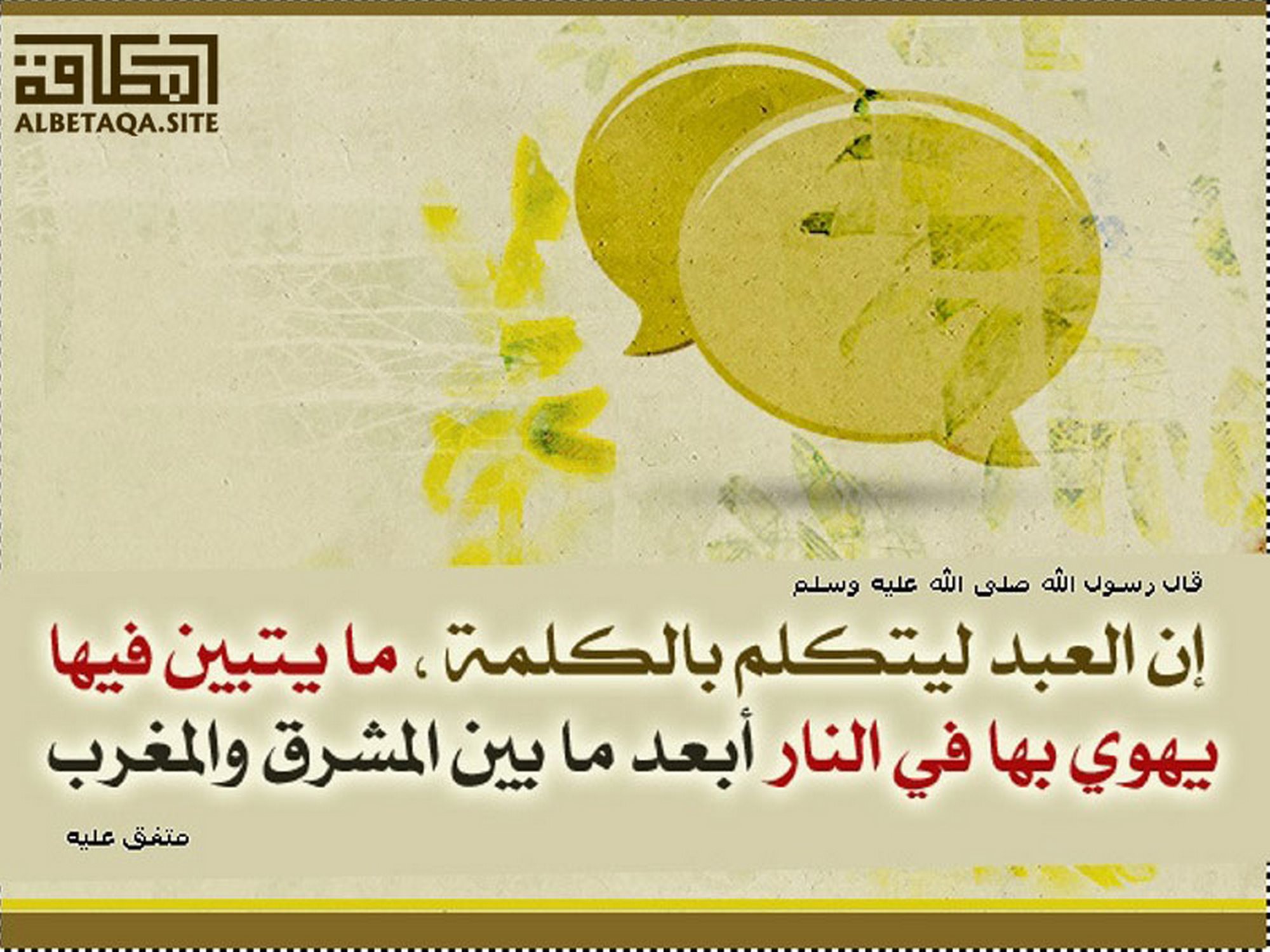 (إن العبد ليتكلم بالكلمة ما يتبين فيها يهوي بها في النار أبعد ما بين المشرق والمغرب). متفق عليه