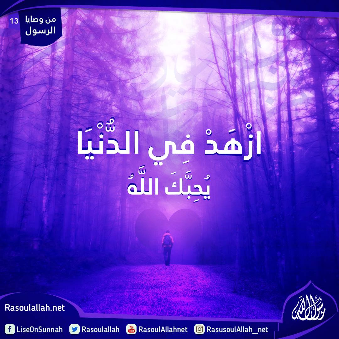 "ازْهَدْ فِي الدُّنْيَا يُحِبَّكَ اللَّهُ"