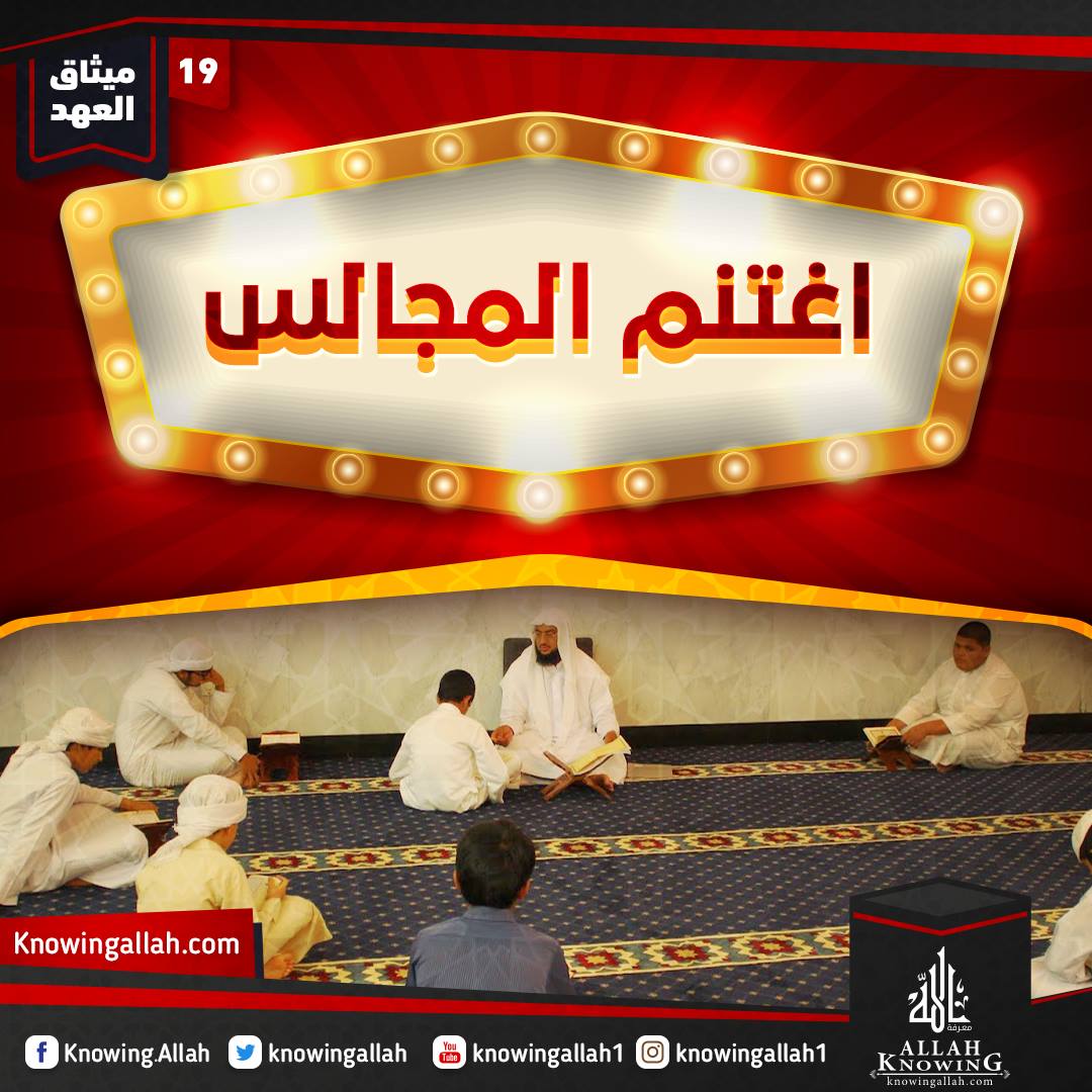 وهو أن تحرص على (مجالس القرآن). قصد التعرف إلى الله والتعريف به، والتحلق بأخلاق رسول الله صلى الله عليه وسلم والتحلم بحلمه. و(مجالس القرآن) هي خير أنواع (مجالس الذكر)، التي تضافرت الأدلة من كتاب الله وسنة رسول الله صلى الله عليه وسلم على أنها محبوبة عند الله، مذكورة في ملئه الأعلى، تشهدها الملائكة، وتنزل السكينة، وتغشاها الرحمة، ويذكرها الله فيمن عنده. وليس شيء أفيد منها في تربية الإنسان المسلم على الصلاح والفلاح. وهي من أهم الوسائل التربوية التي لا غيش فيها ولا غبار، من حيث استنادها إلى الأدلة المتواترة بالمعنى، عبر ألأحاديث الوفيرة المستفيضة. نذكر منها الحديث المشهور، الذي رواه أبو هريرة مرفوعا عن النبي صلى الله عليه وسلم ، والذي فيه : "ما اجتمع قوم في بيت من بيوت الله يتلون كتاب الله ويتدراسونه بينهم؛ إلا نزلت عليهم السكينة، وغشيتهم الرحمة وحفتهم الملائكة، وذكرهم الله فيمن عنده. ومن أبطأ به عمله لم يسرع به نسه.