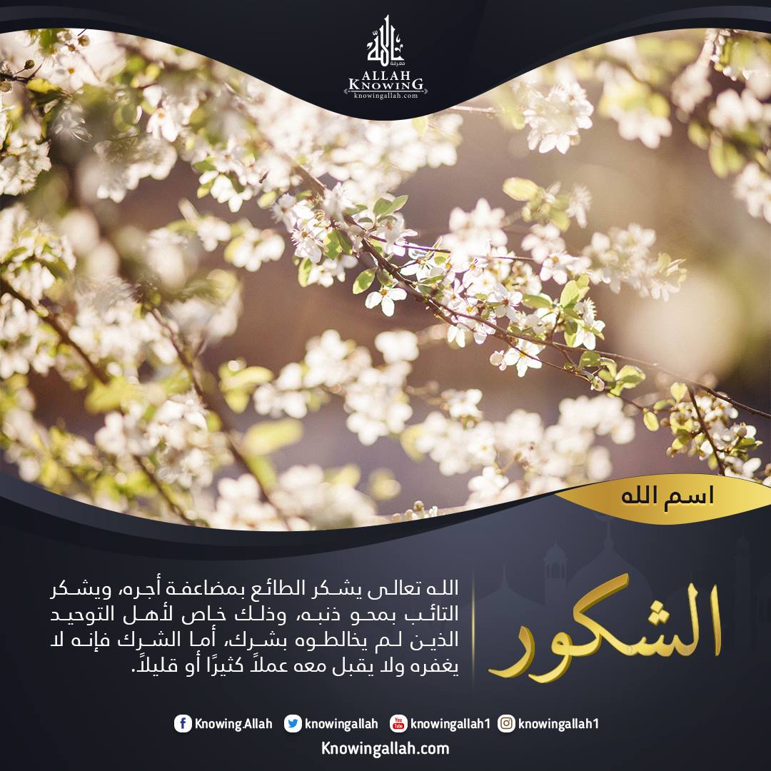 المعاني والدلالات لاسمه تعالى الشكور:
