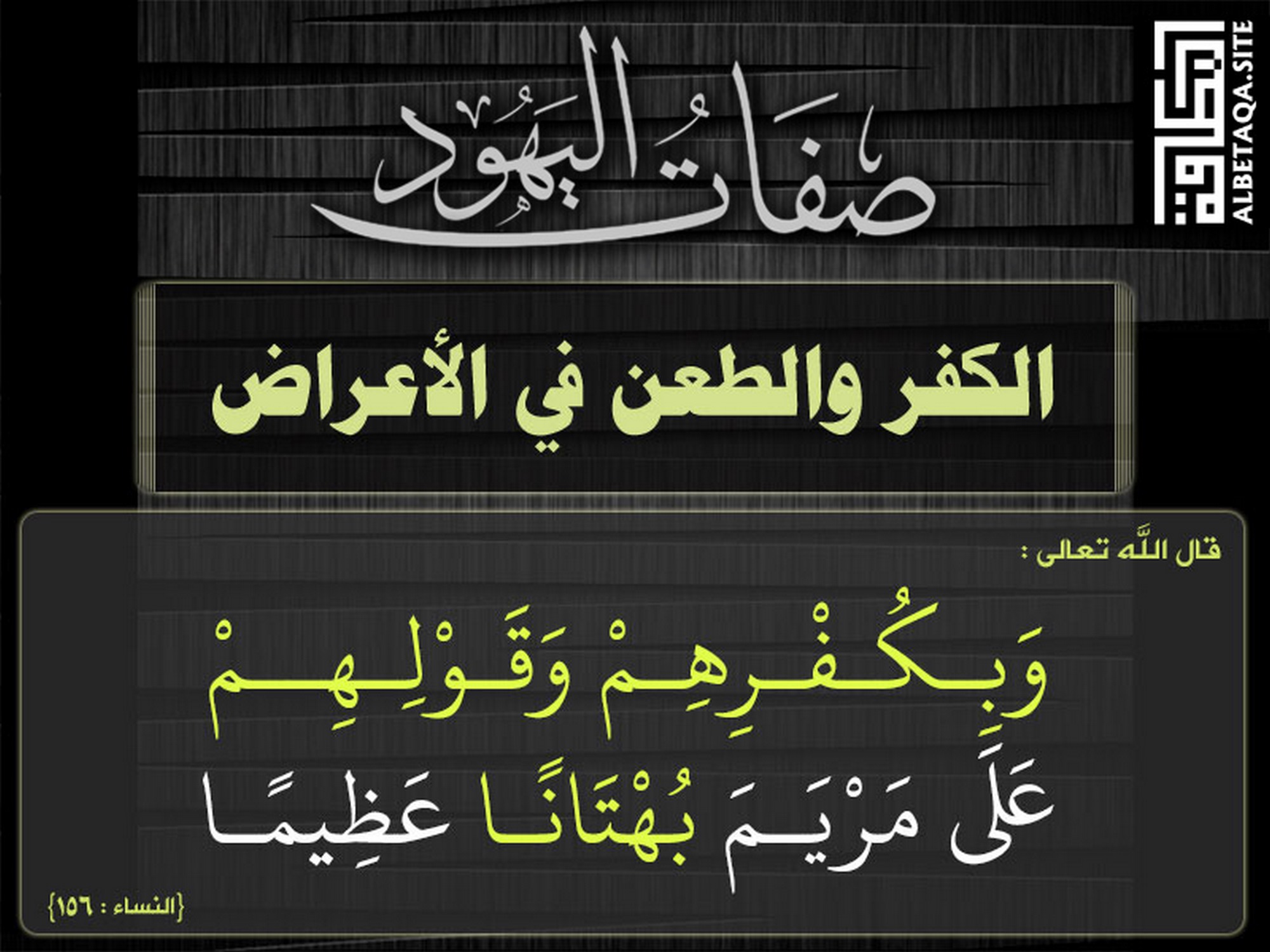 (وبكفرهم وقولهم على مريم بهتانا عظيما). {النساء: 156}