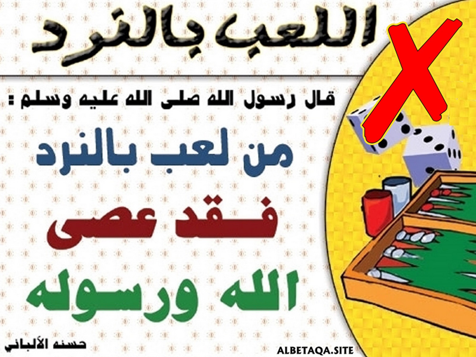 (من لعب بالنرد فقد عصى الله ورسوله). حسنه الألباني