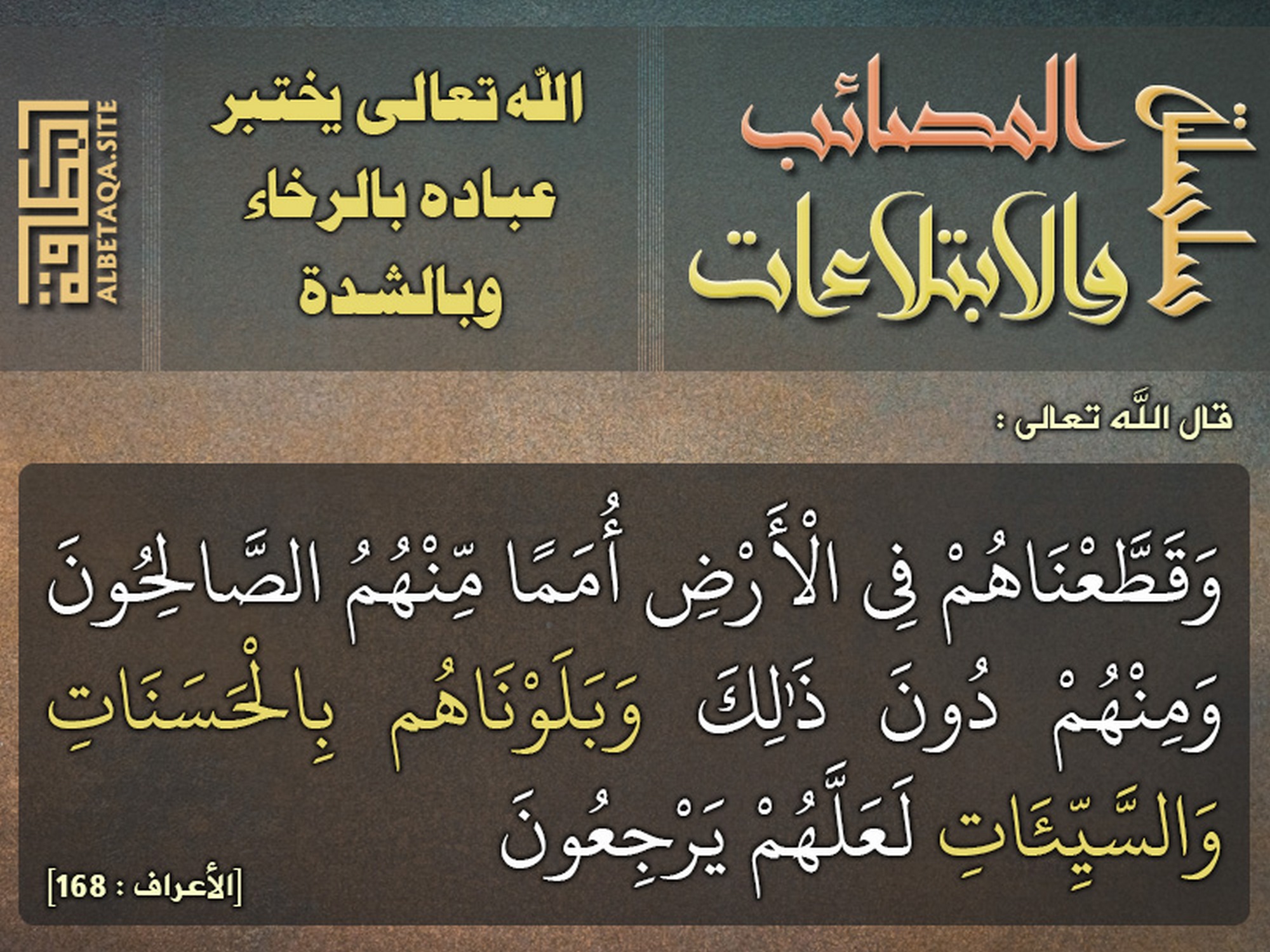 (وقطعناهم في الأرض أمما منهم الصالحون ومنهم دون ذلك وبلوناهم بالحسنات والسيئات لعلهم يرجعون). [الأعراف: 168]