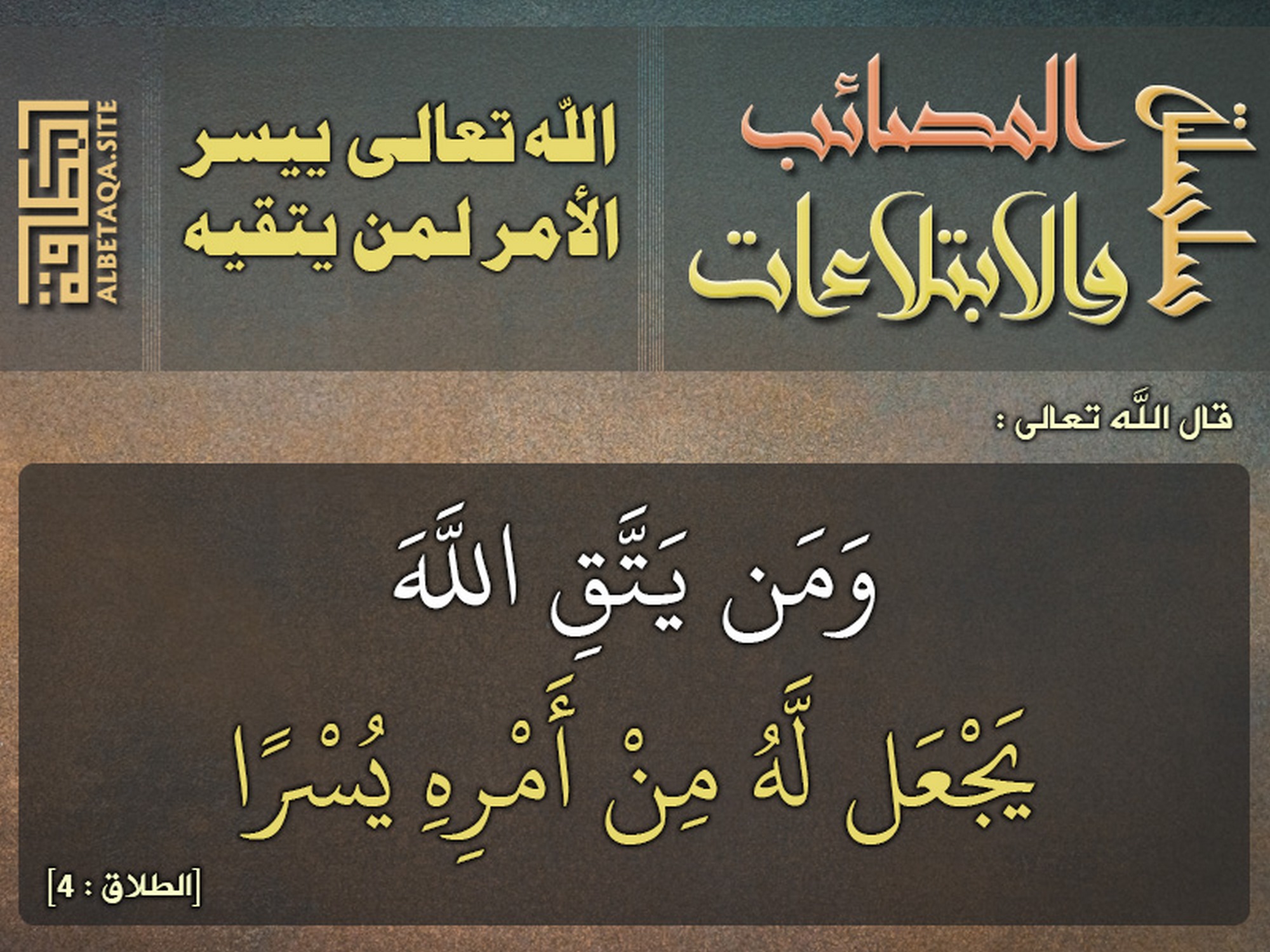 (ومن يتق الله يجعل له من أمره يسرا). [الطلاق: 4]