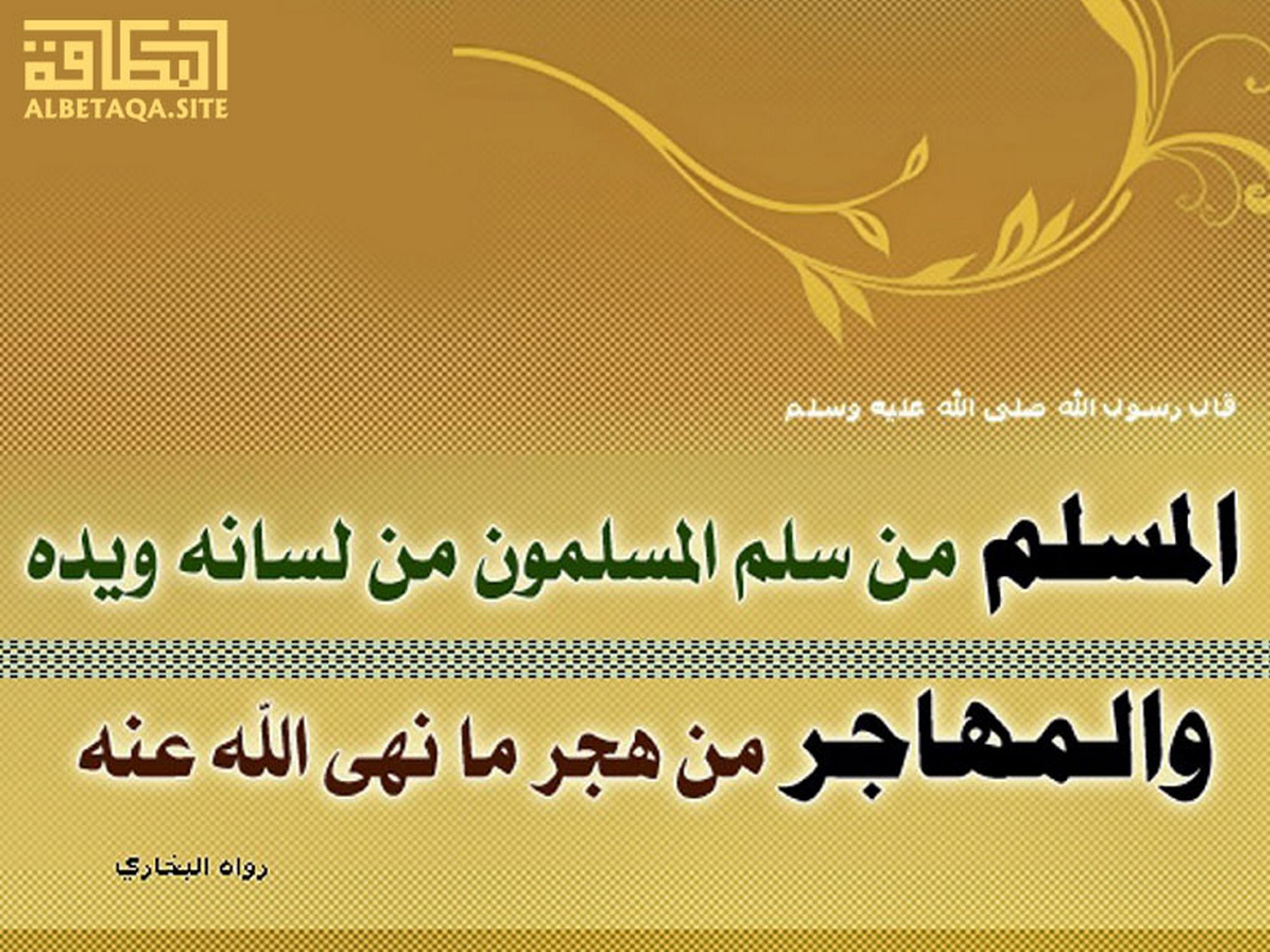 (المسلم من سلم المسلمون من لسانه ويده والمهاجر من هجر ما نهى الله عنه). رواه البخاري
