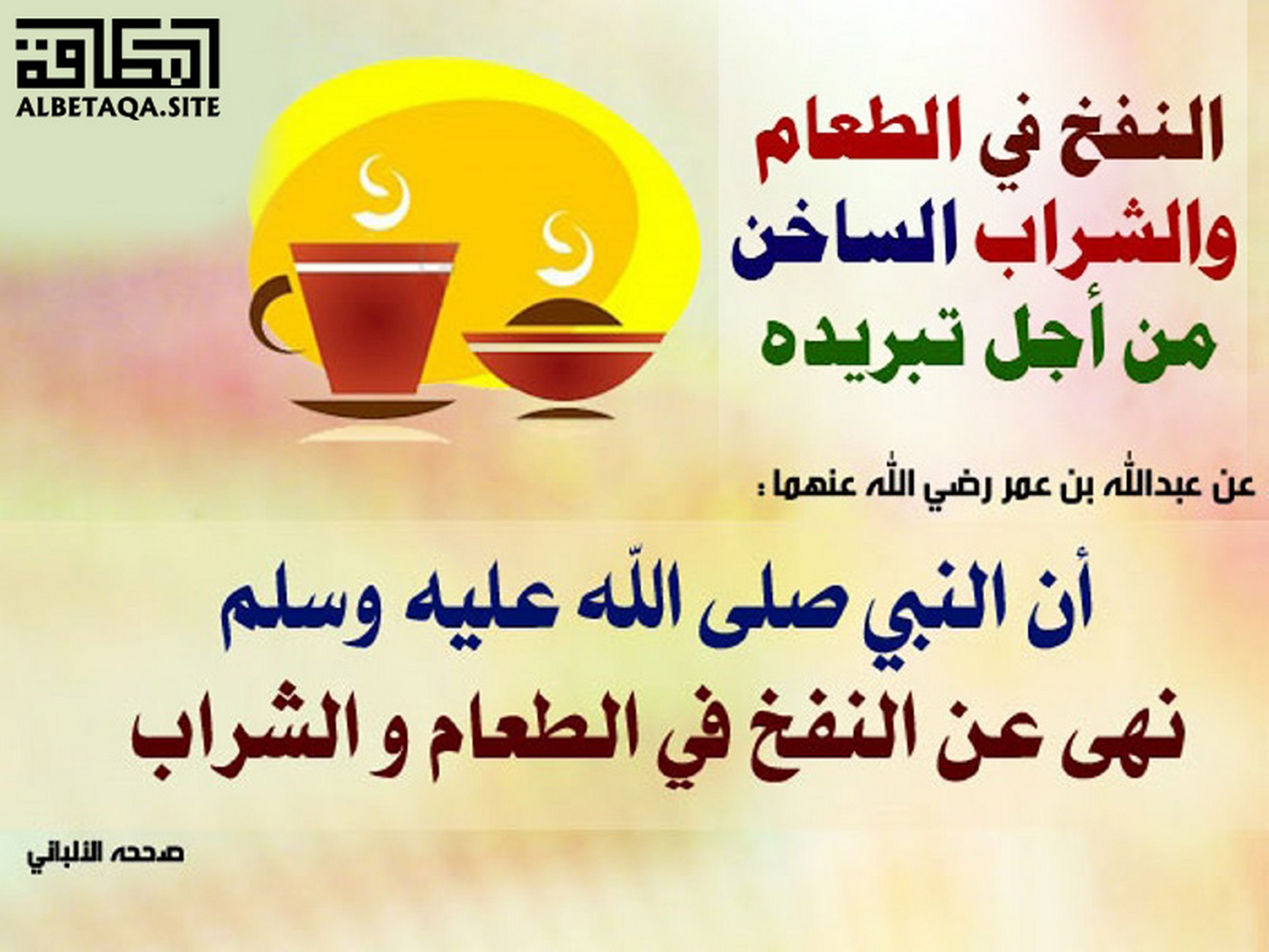 (أن النبي صلى الله عليه وسلم نهى عن النفخ في الطعام والشراب). صححه الألباني