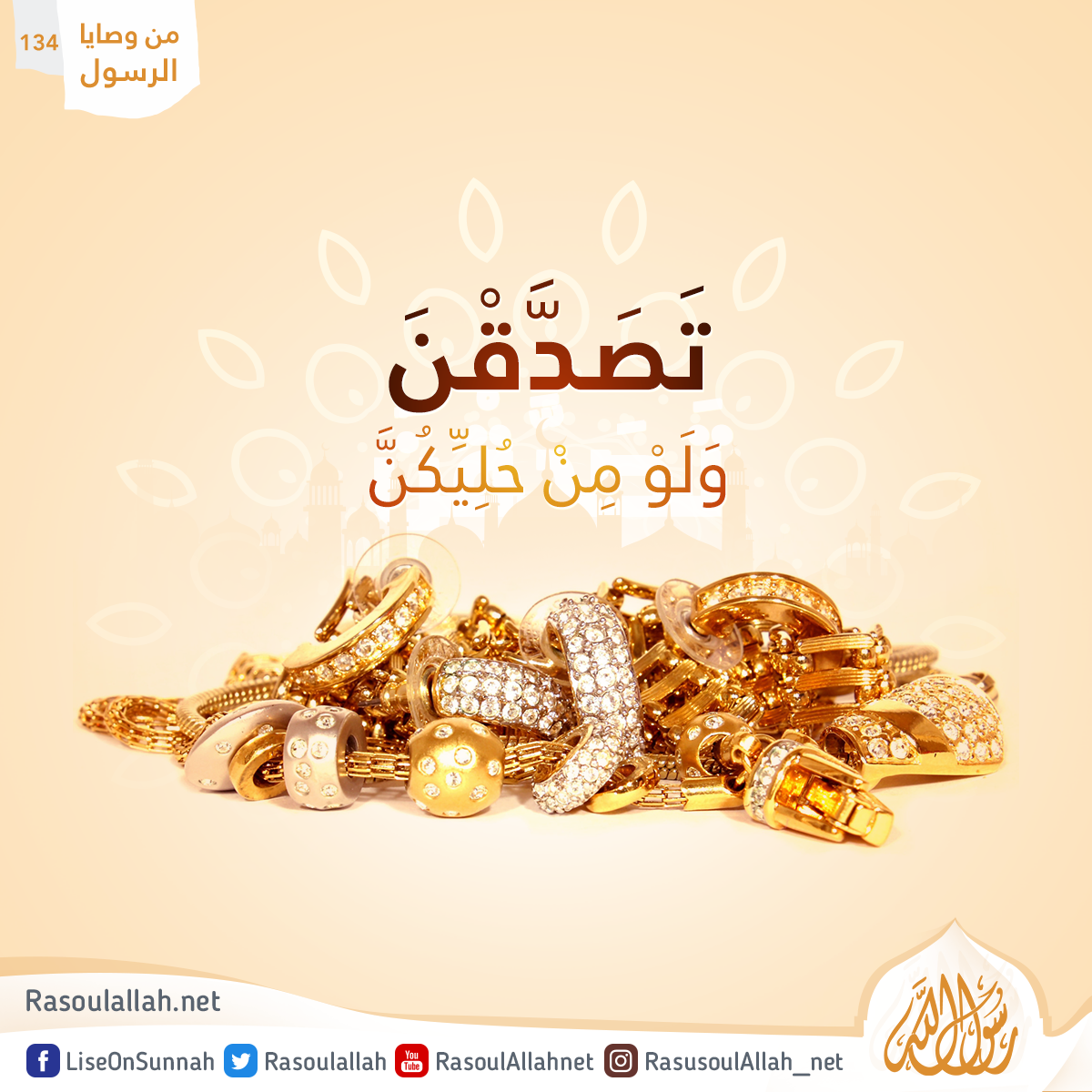 تَصَدَّقْنَ يَا مَعْشَرَ النِّسَاءِ وَلَوْ مِنْ حُلِيِّكُنَّ