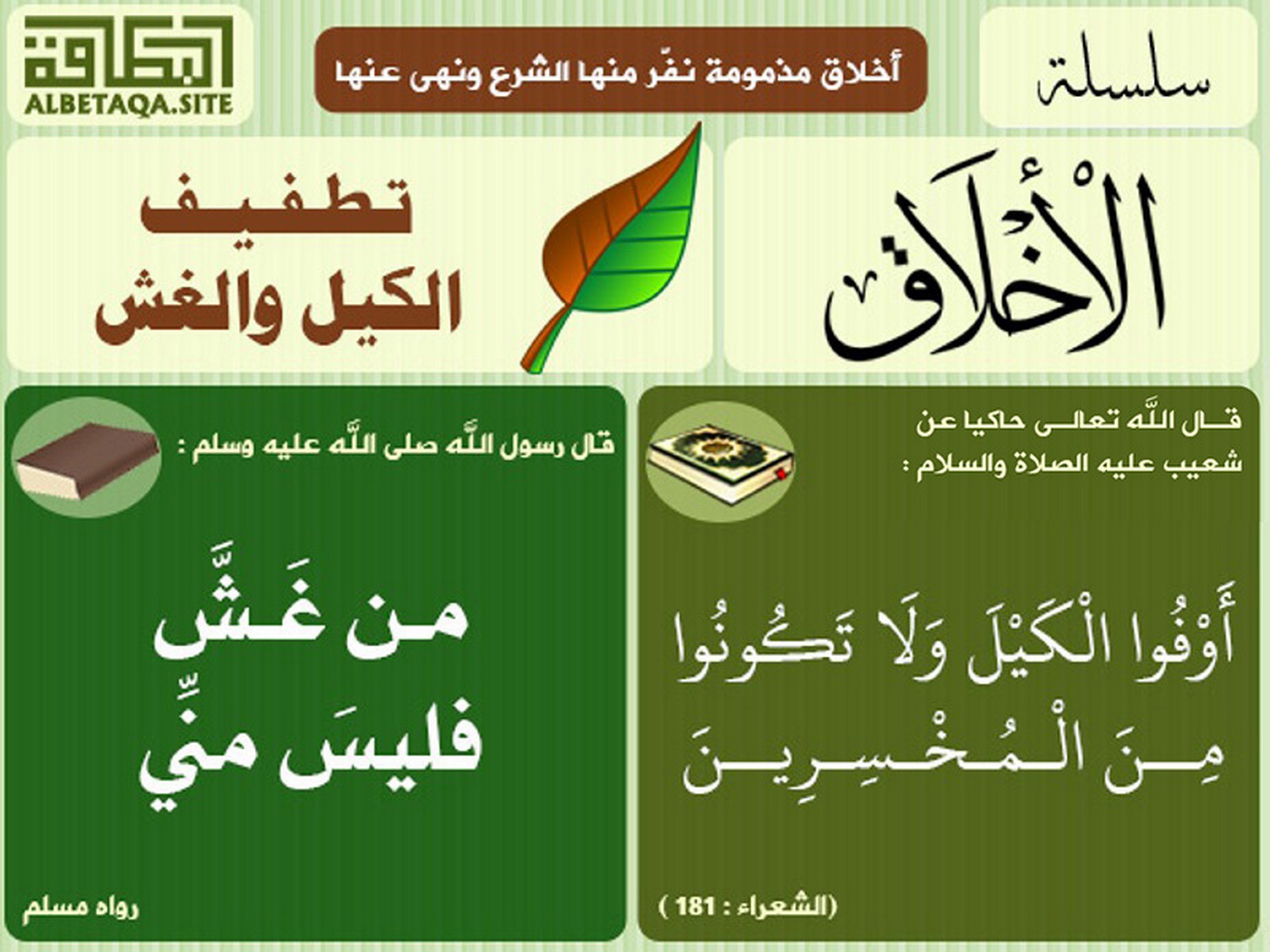 (أوفوا الكيل ولا تكونوا من المخسرين). (الشعراء : 181)