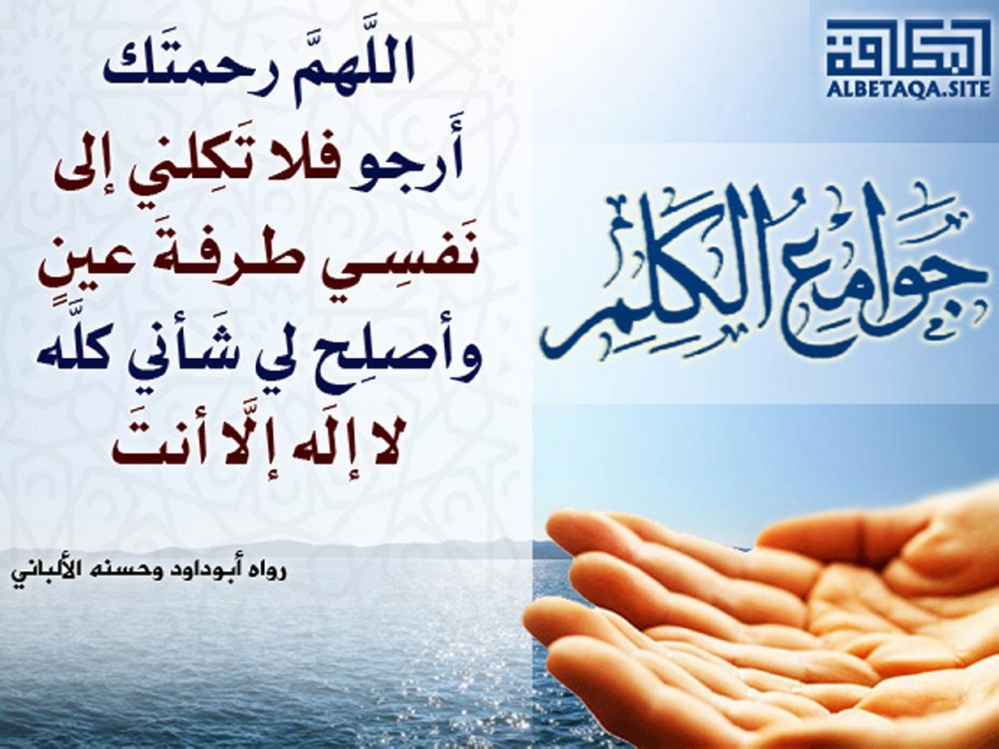 (اللهم رحمتك أرجو فلا تكلني إلى نفسي طرفة عين، وأصلح لي شأني كله لا إله إلا أنت). رواه أبو داود وحسنه الألباني