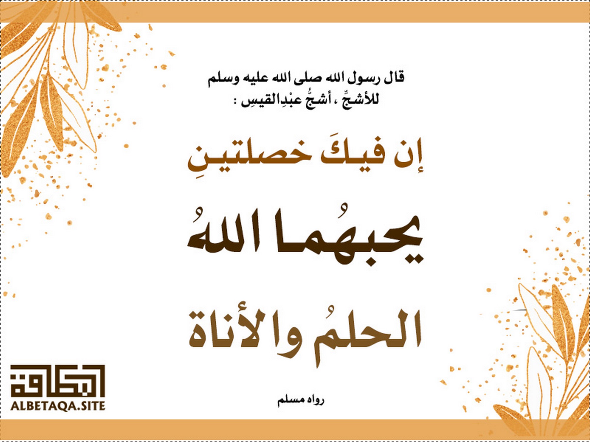 (إن فيك خصلتين يحبهما الله: الحلم والأناة). رواه مسلم