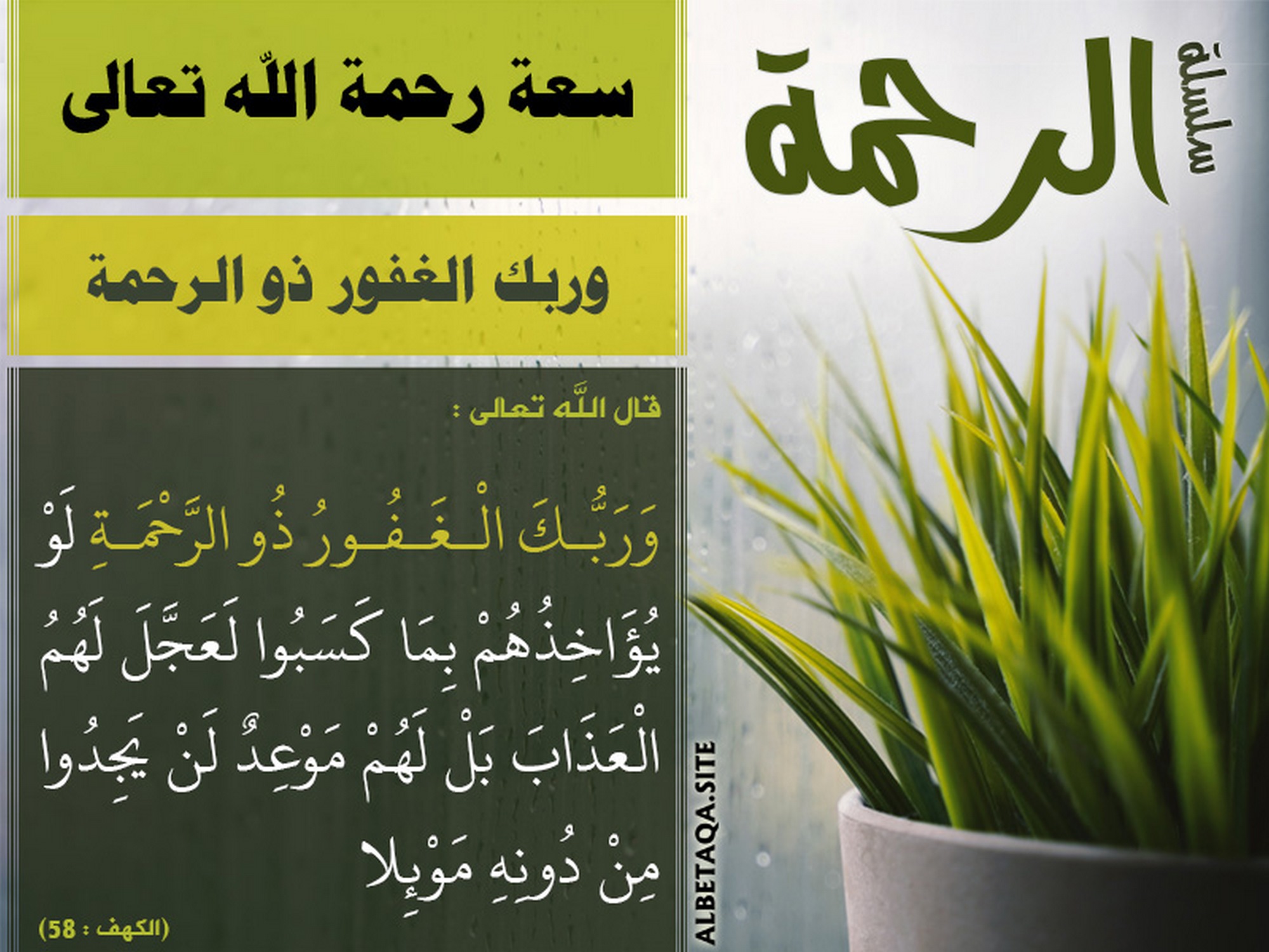(وربك الغفور ذو الرحمة لو يؤاخذهم بما كسبوا لعجل لهم العذاب بل لهم موعد لن يجدوا من دونه موئلا). (الكهف : 58)