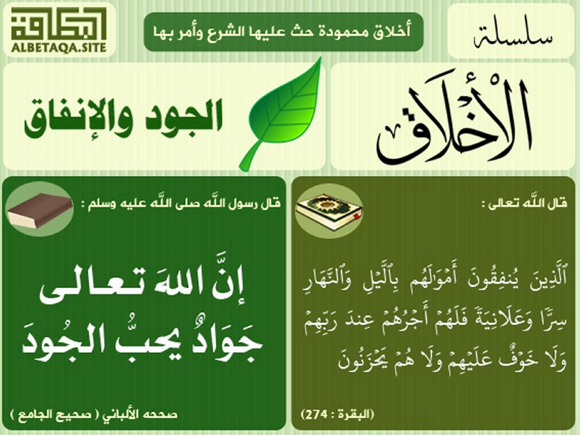 (إن الله تعالى جواد يحب الجود). صححه الألباني (صحيح الجامع)