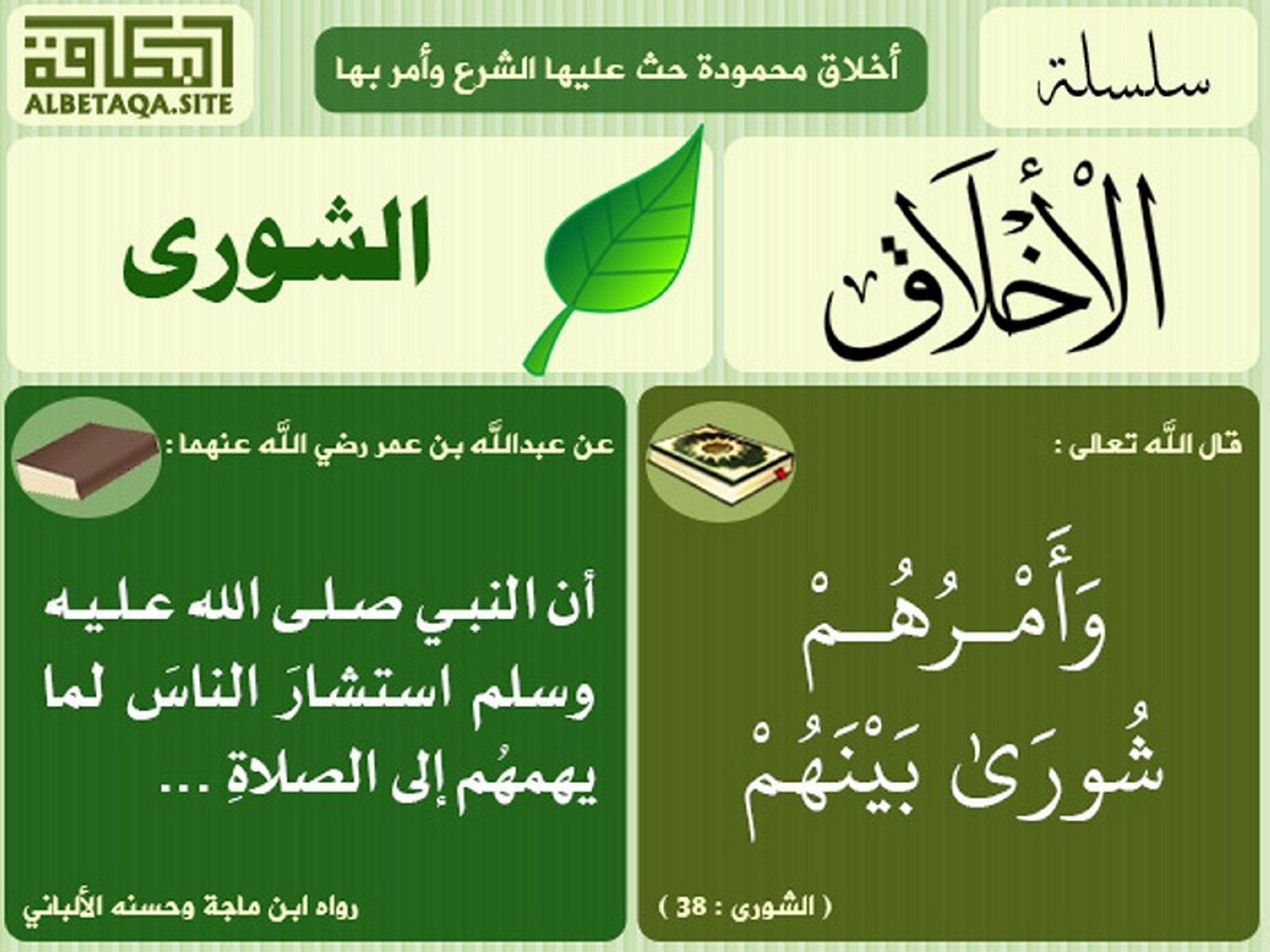 (وأمرهم شورى بينهم). (الشورى : 38)