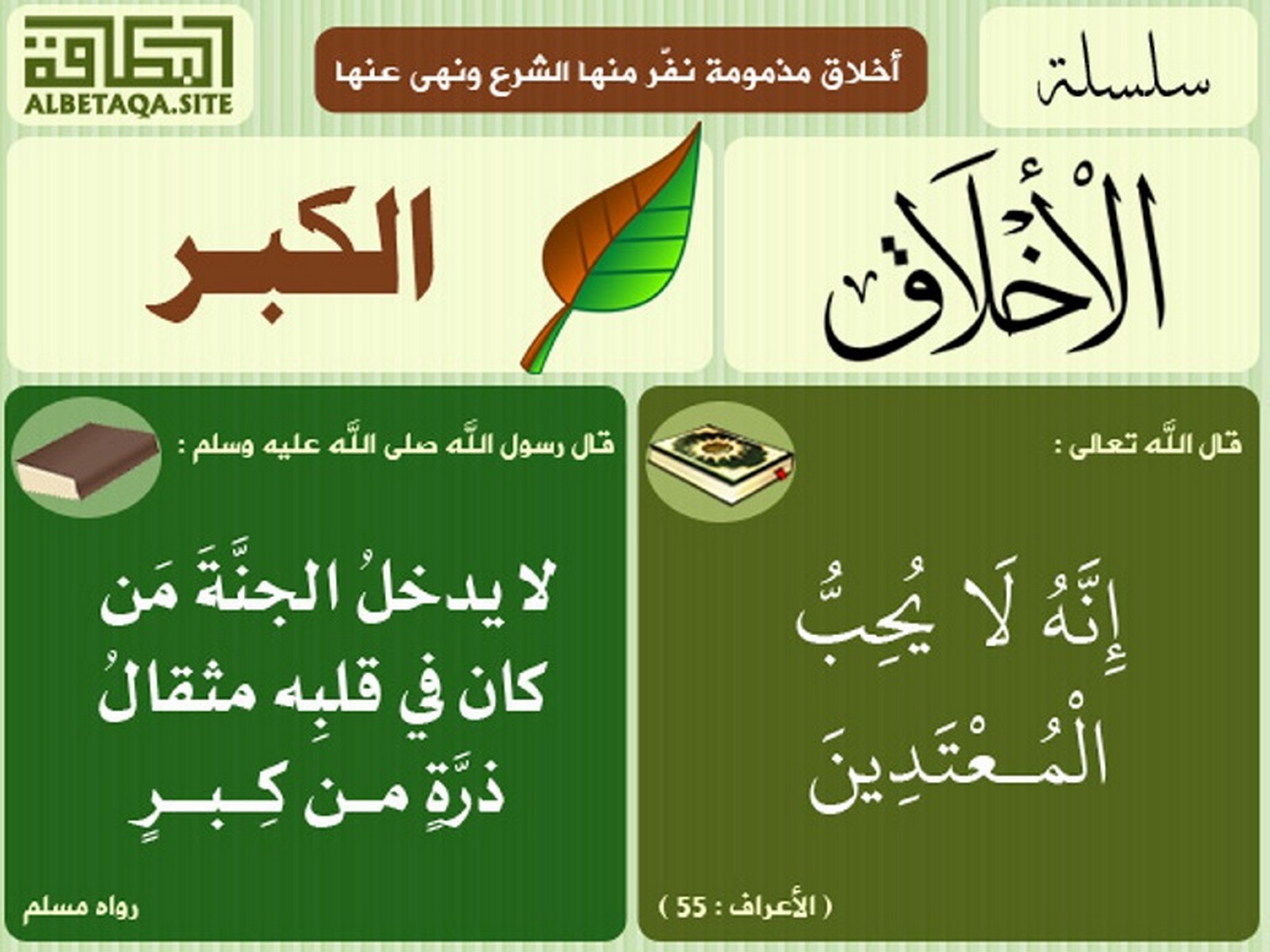 (لا يدخل الجنة من كان في قلبه مثقال ذرة من كبر). رواه مسلم
