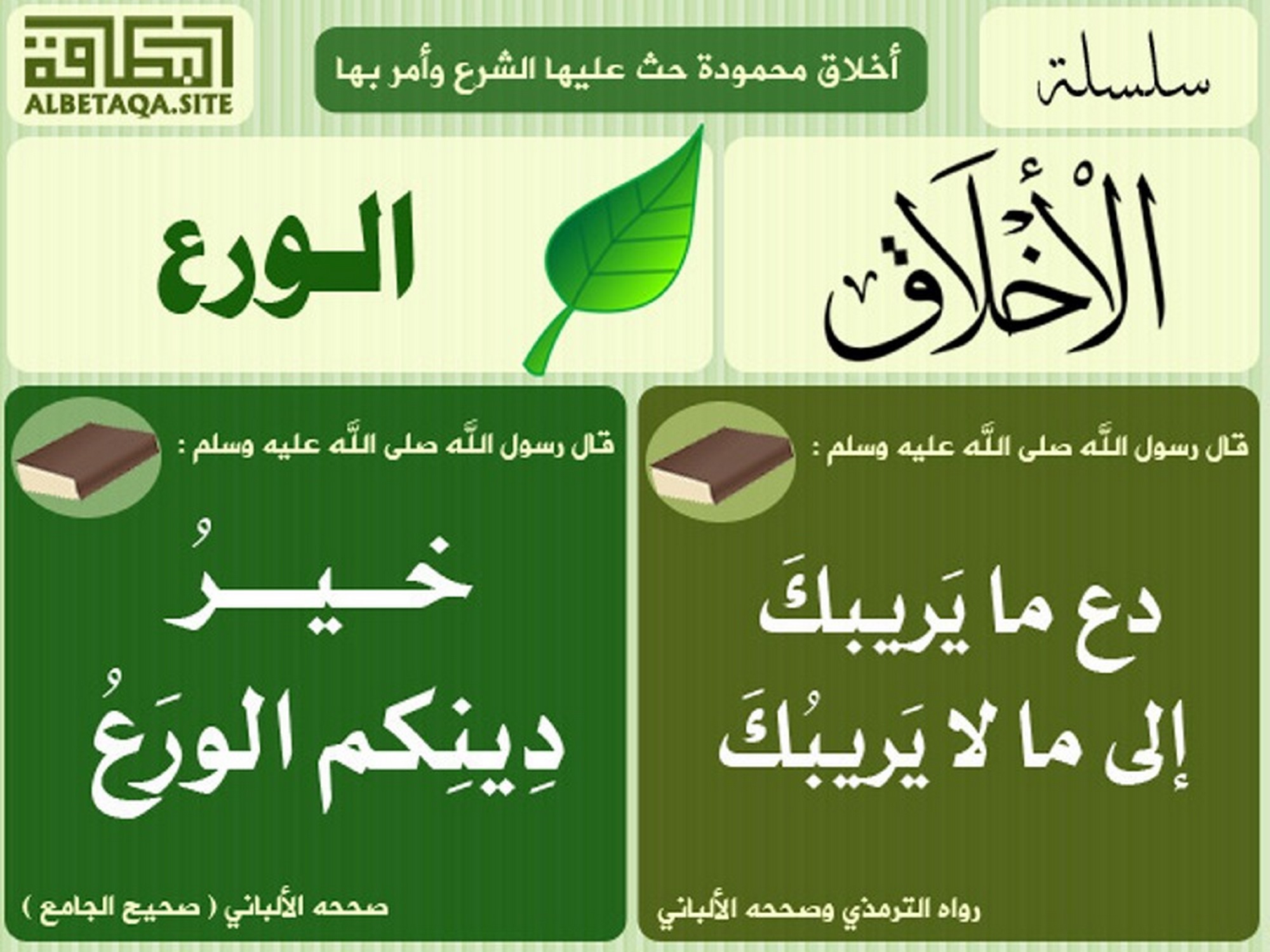 (خير دينكم الورع). صححه الألباني (صحيح الجامع)