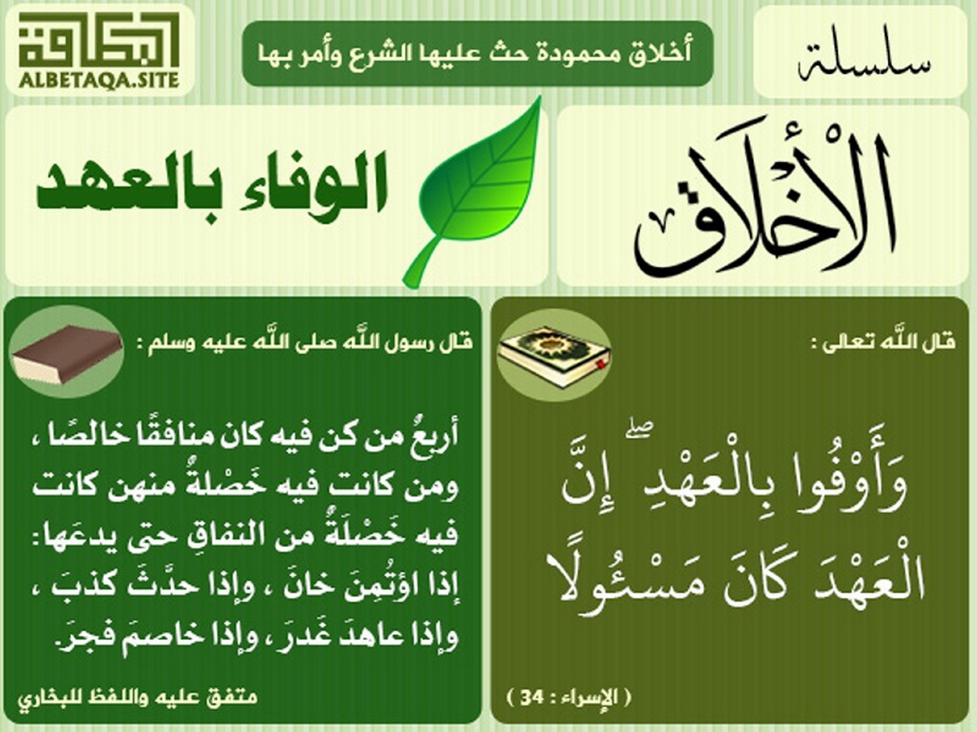 (وأوفوا بالعهد إن العهد كان مسئولا). (الإسراء : 34)