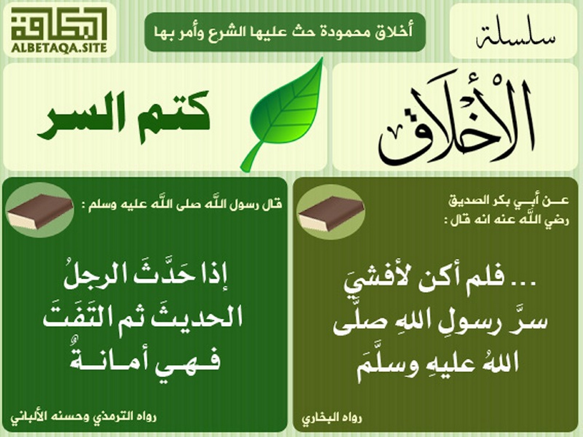 (إذا حدث الرجل الحديث ثم التفت فهي أمانة). رواه الترمذي وحسنه الألباني