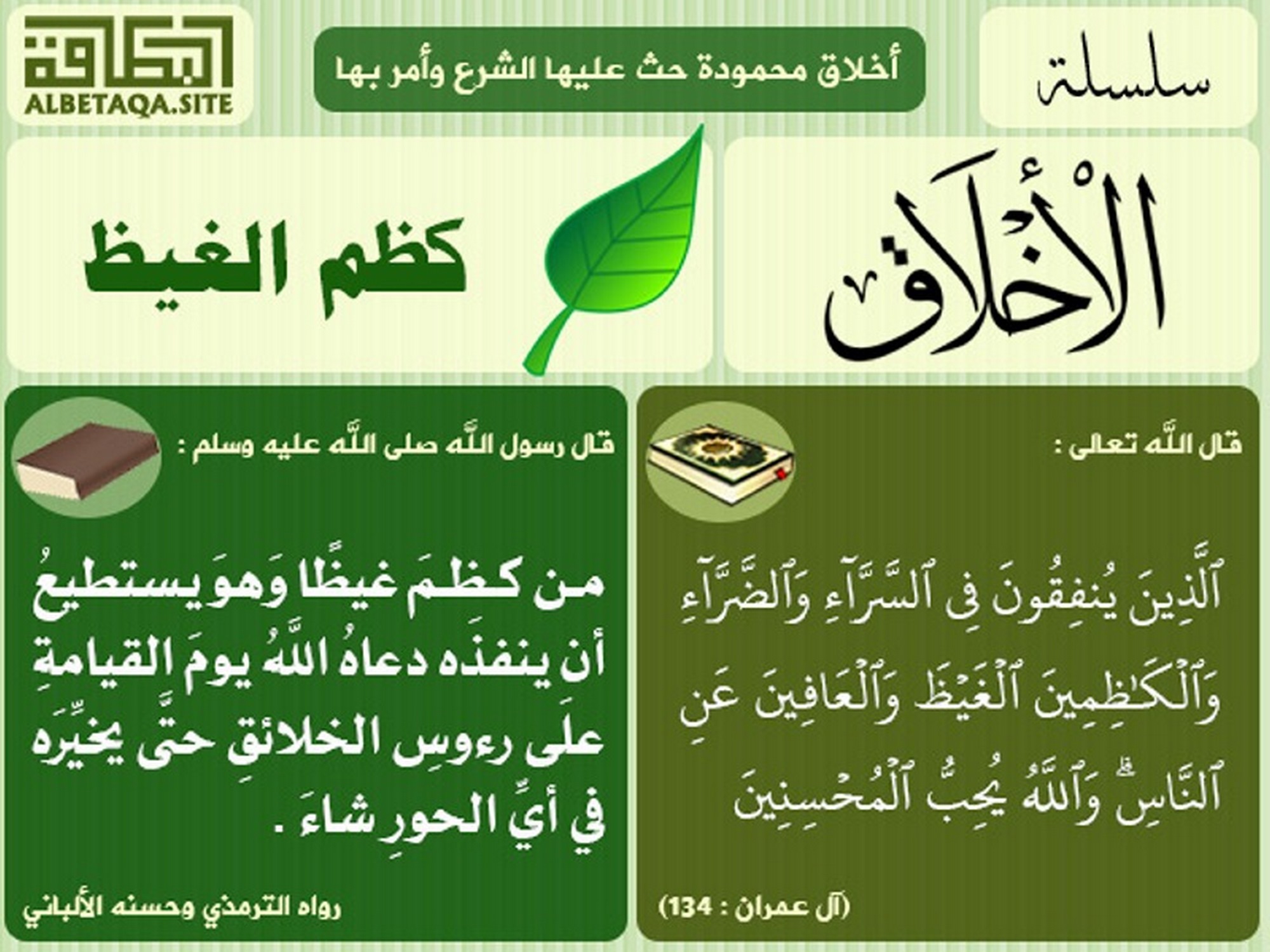 (الذين ينفقون في السراء والضراء والكاظمين الغيظ والعافين عن الناس). (آل عمران : 134)