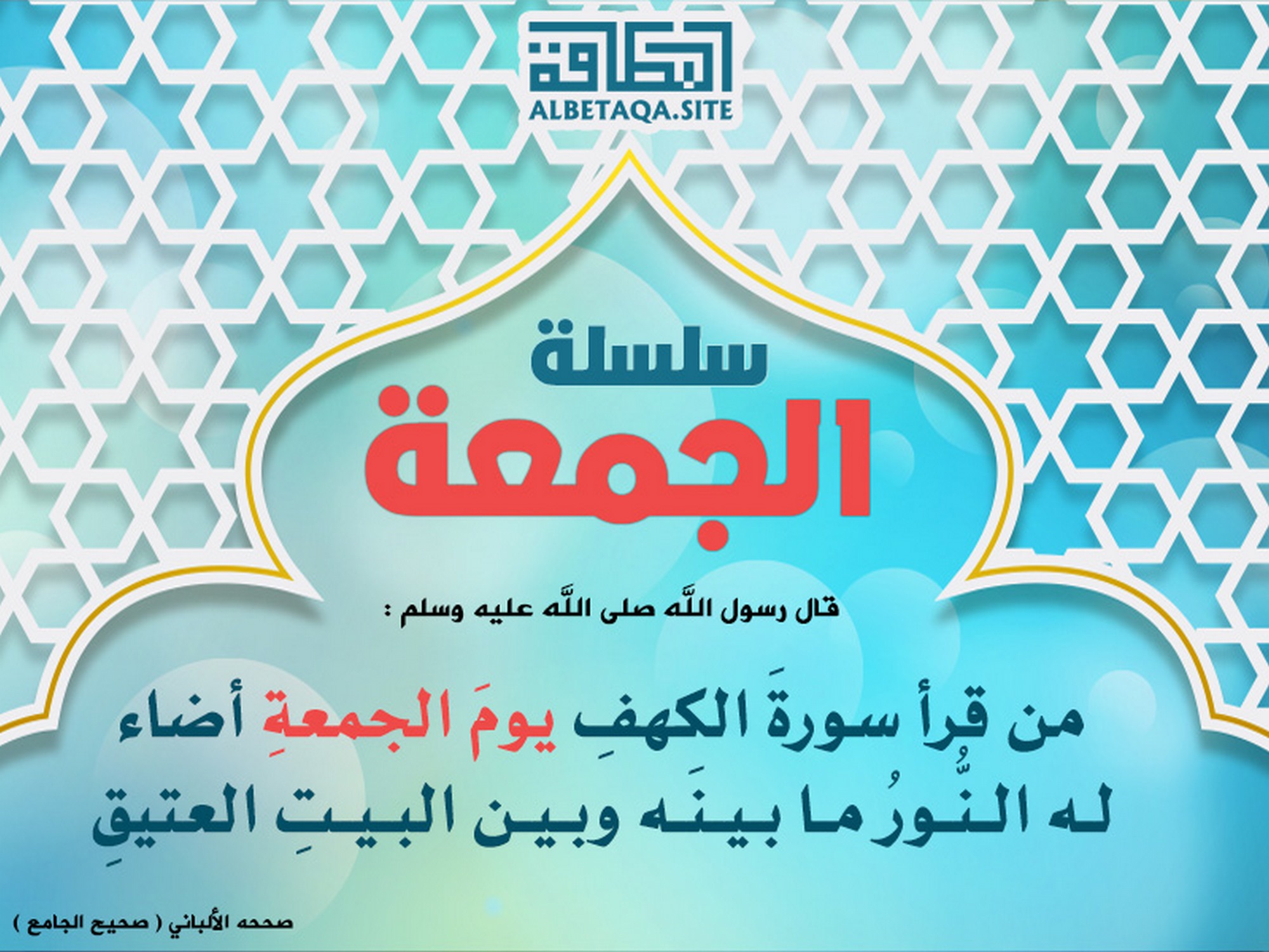 (من قرأ سورة الكهف يوم الجمعة أضاء له النور ما بينه وبين البيت العتيق). صححه الألباني (صحيح الجامع)