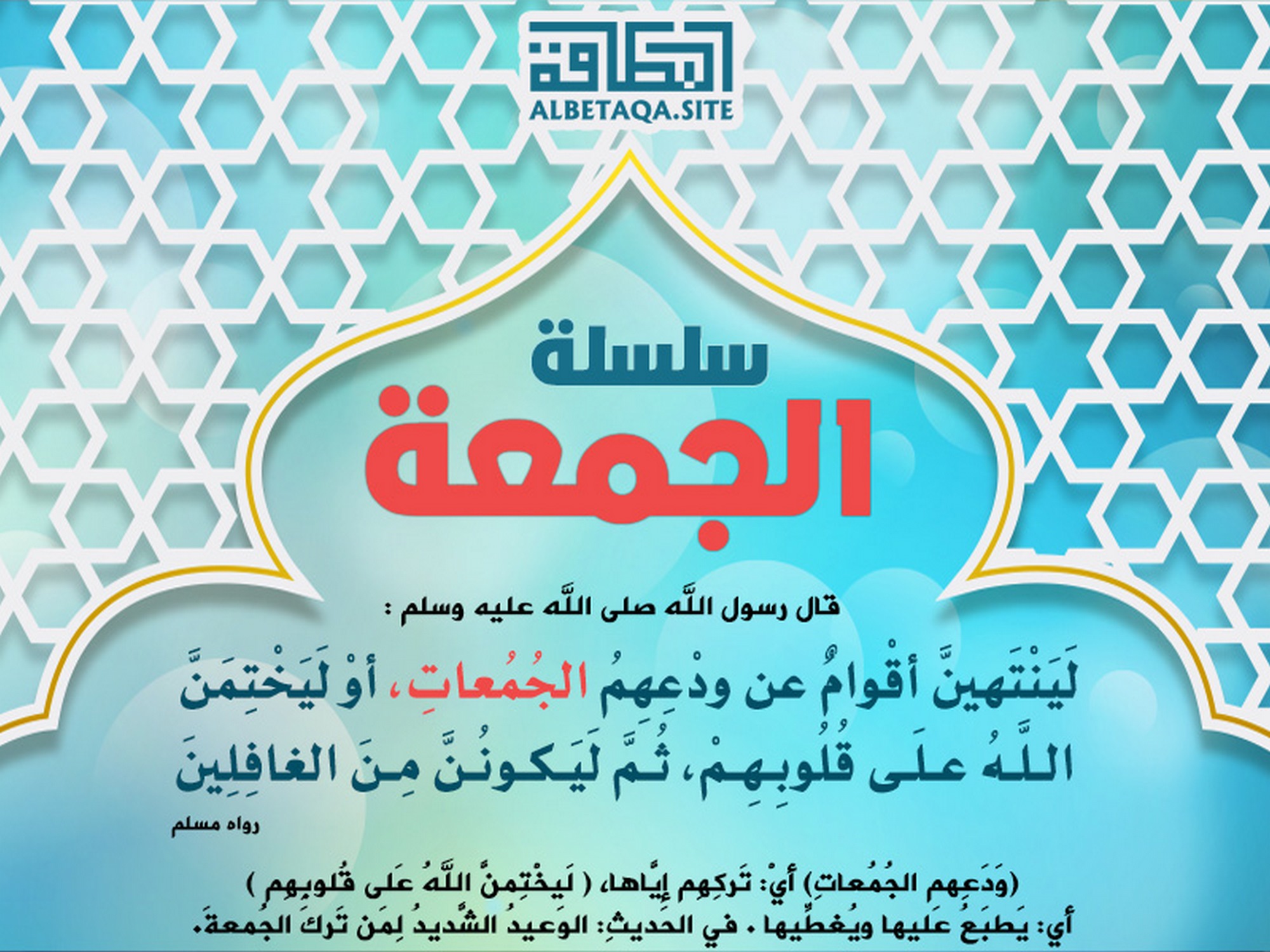 (لينتهين أقوام عن ودعهم الجمعات، أو ليختمن الله على قلوبهم، ثم ليكونن من الغافلين). رواه مسلم