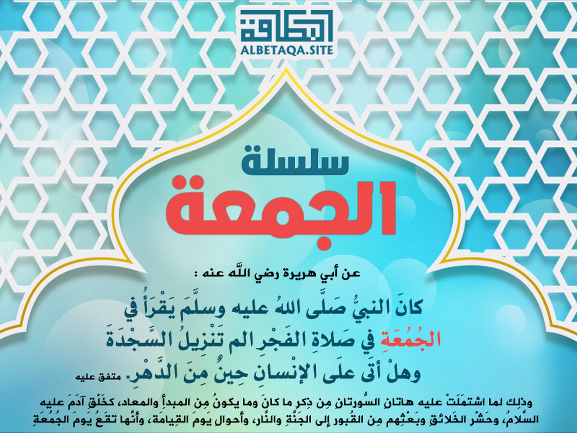 سلسلة الجمعة - يقرأ في الجمعة في صلاة الفجر الم تنزيل السجدة