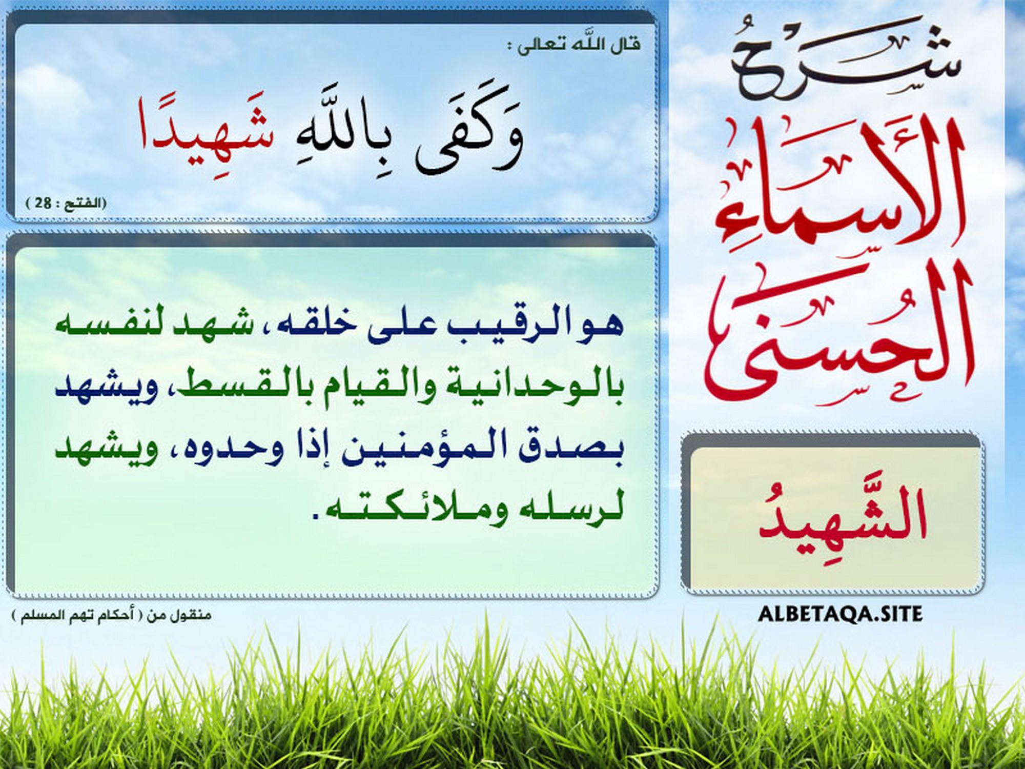 (وكفى بالله شهيدا). (الفتح : 28)