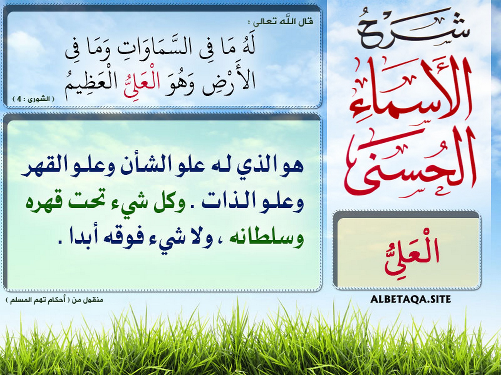 شرح الأسماء الحسنى - العلي