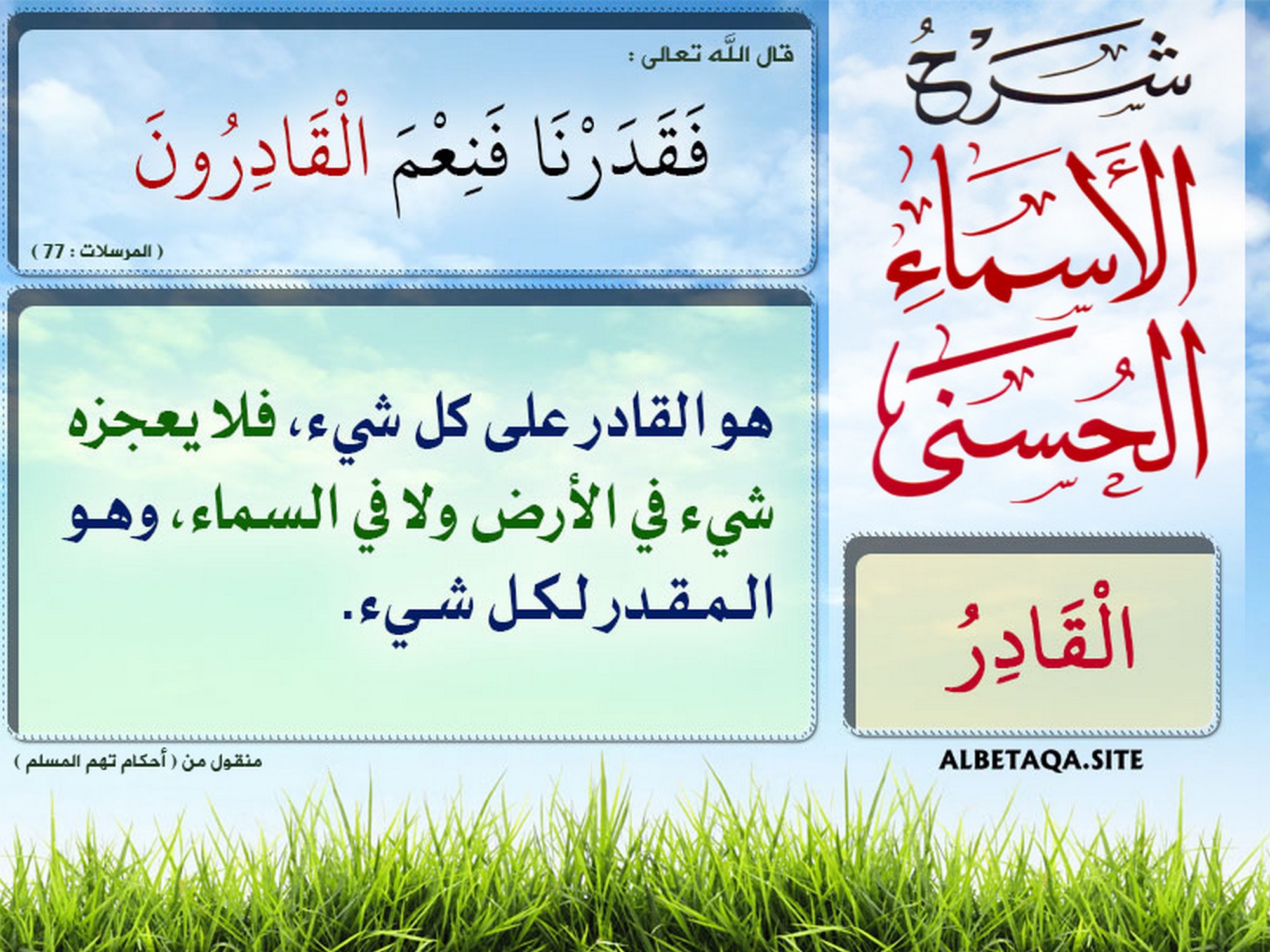شرح الأسماء الحسنى - القادر