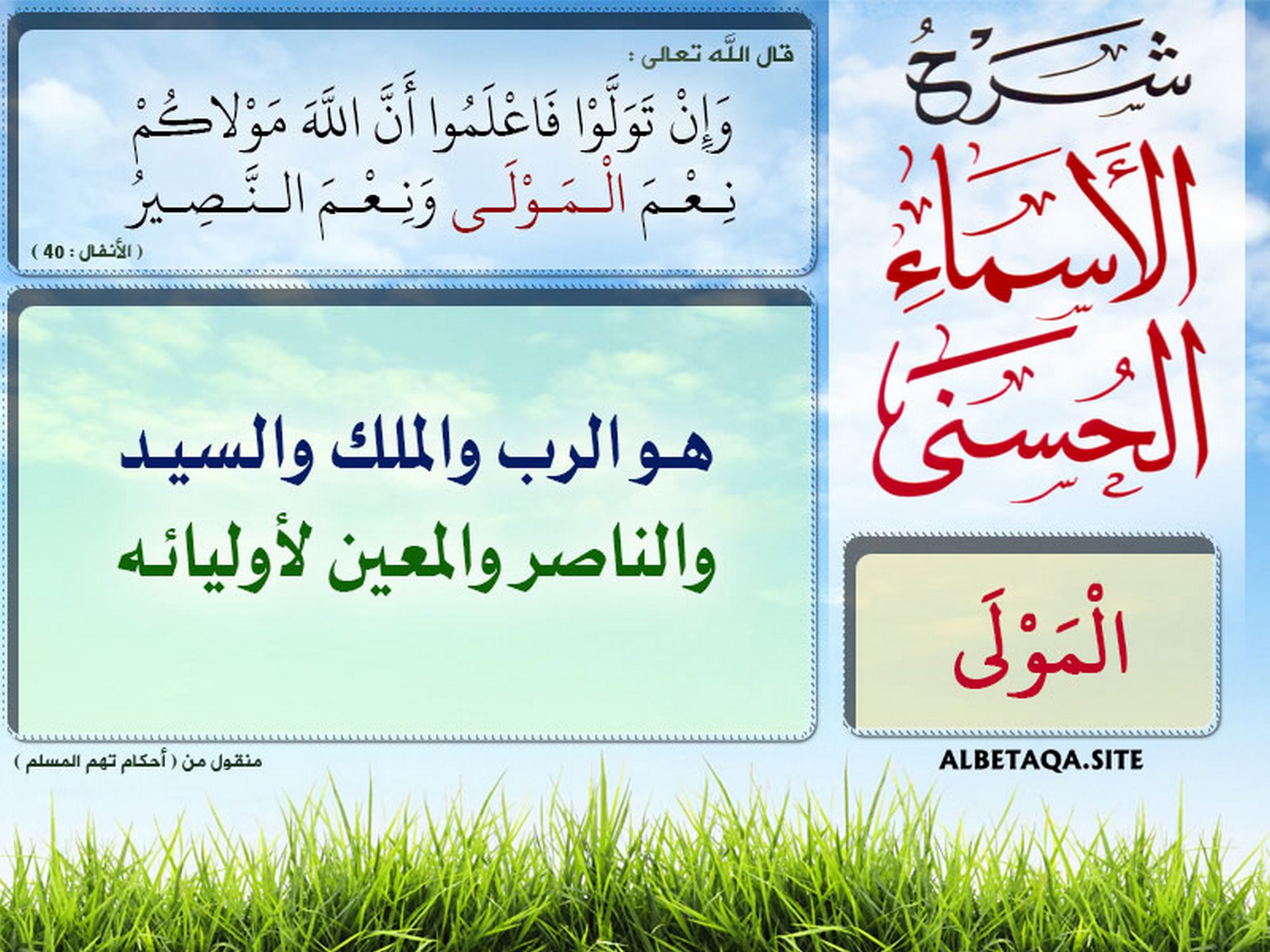شرح الأسماء الحسنى - المولى
