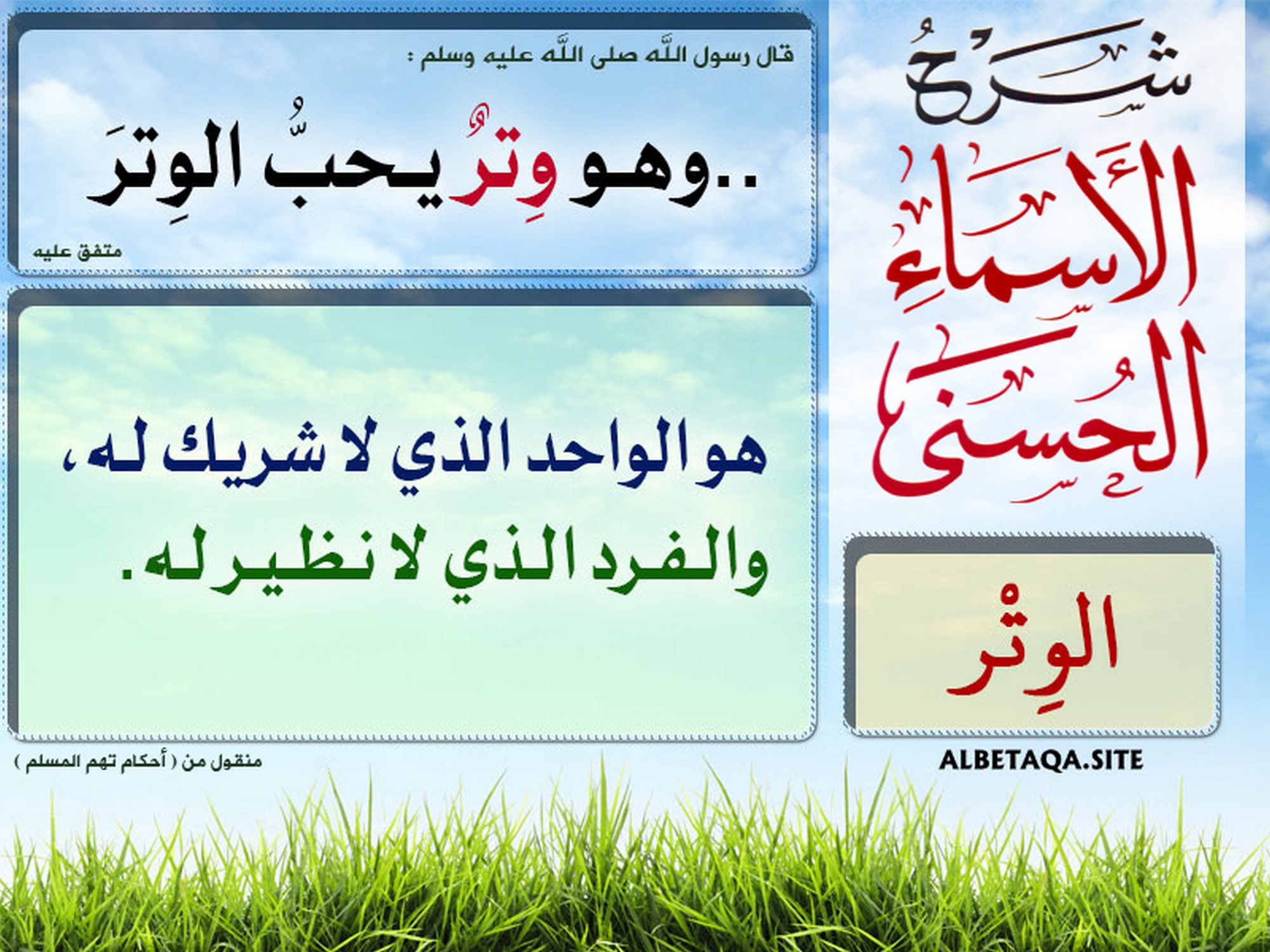 الوتر: هو الواحد الذي لا شريك له، والفرد الذي لا نظير له. منقول من (أحكام تهم المسلم)