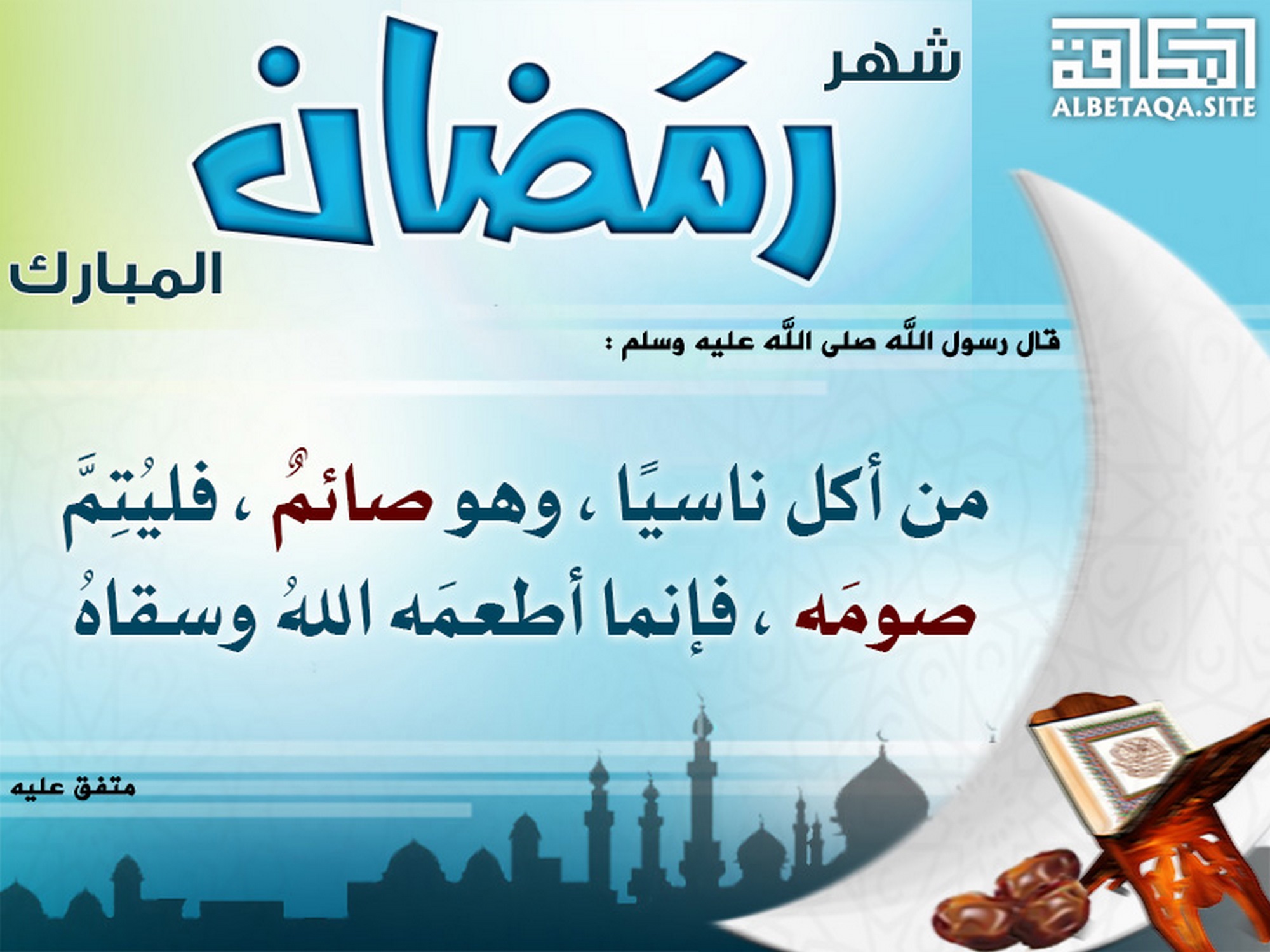 شهر رمضان المبارك – أطعمه الله وسقاه
