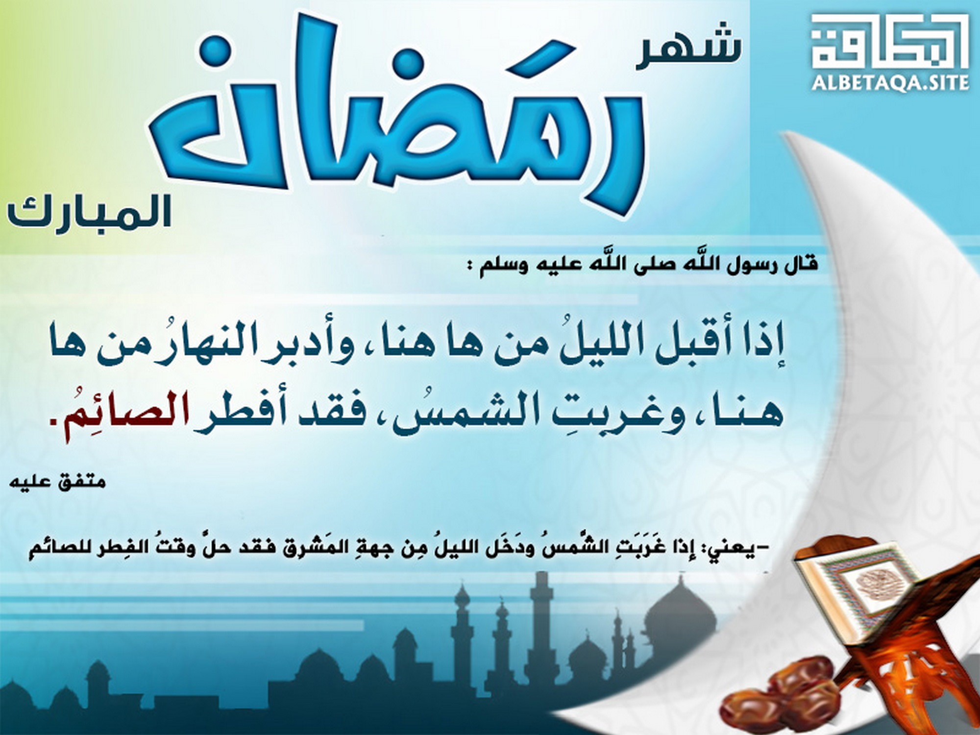 (إذا أقبل الليل من ها هنا، وأدبر النهار من ها هنا، وغربت الشمس، فقد أفطر الصائم). متفق عليه