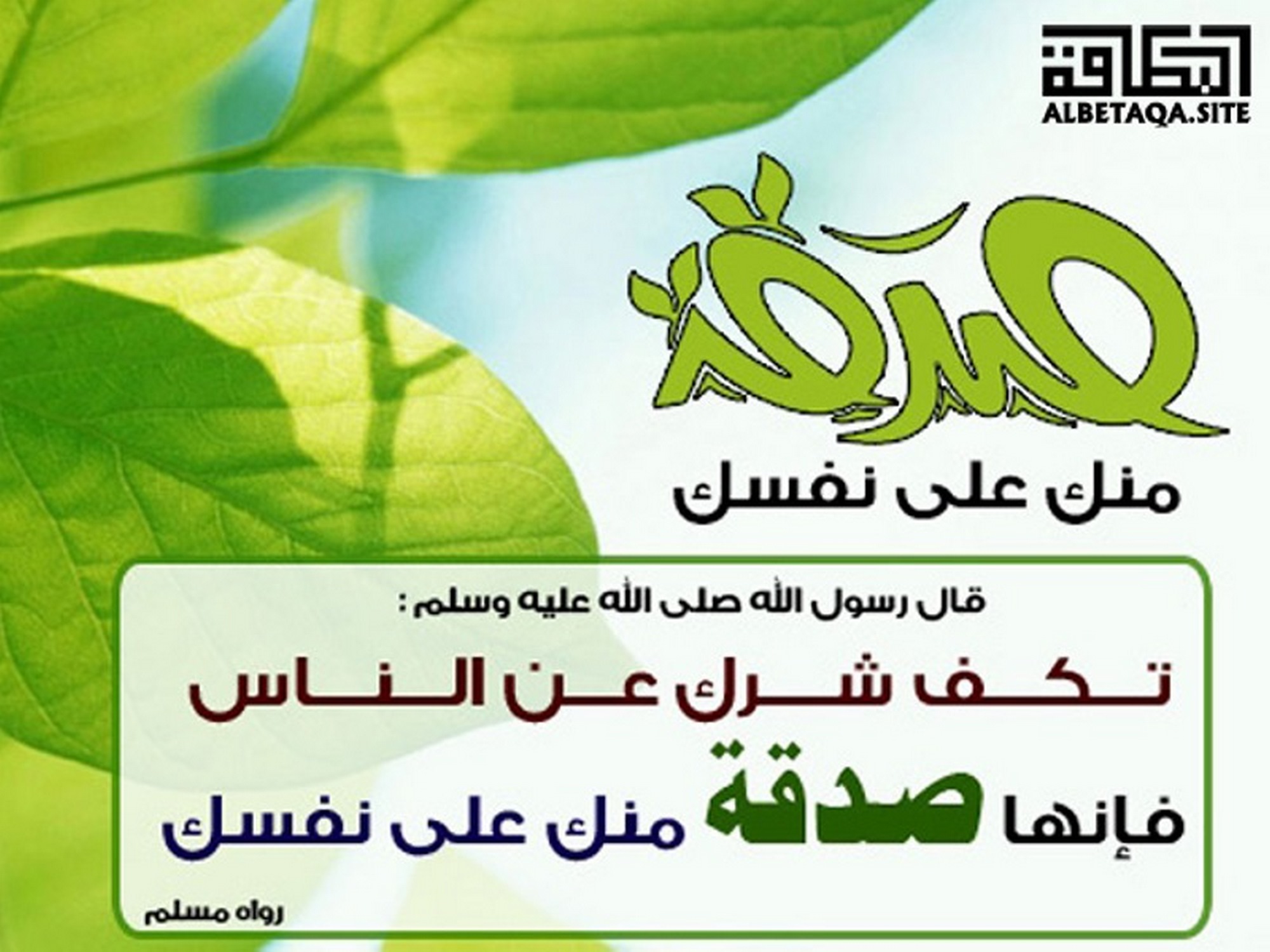 (تكف شرك عن الناس فإنها صدقة منك على نفسك). رواه مسلم