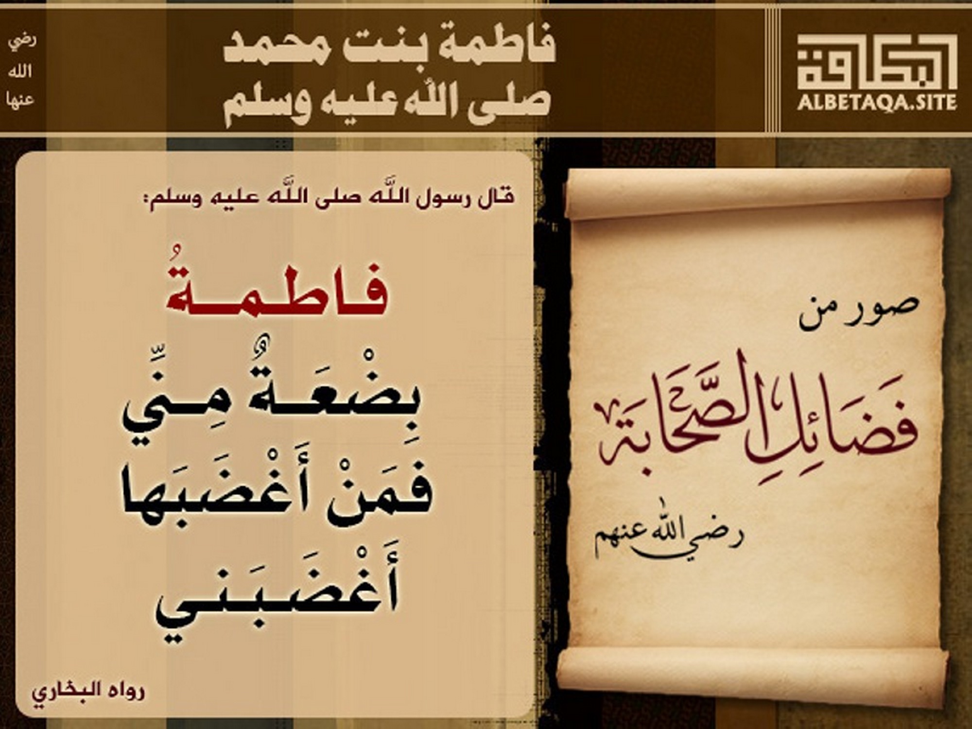 (فاطمة بضعة مني، فمن أغضبها أغضبني). رواه البخاري