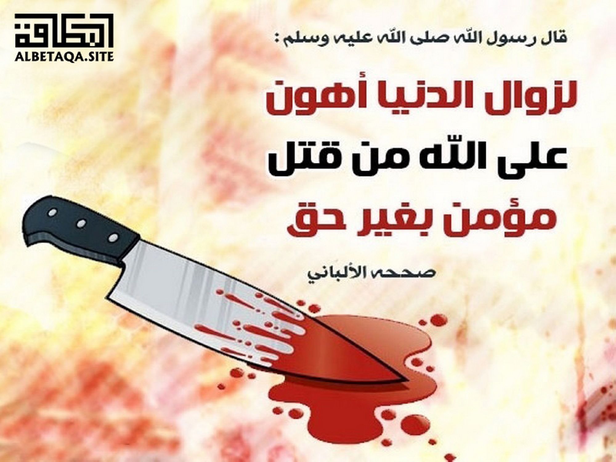 (لزوال الدنيا أهون على الله من قتل مؤمن بغير حق). صححه الألباني