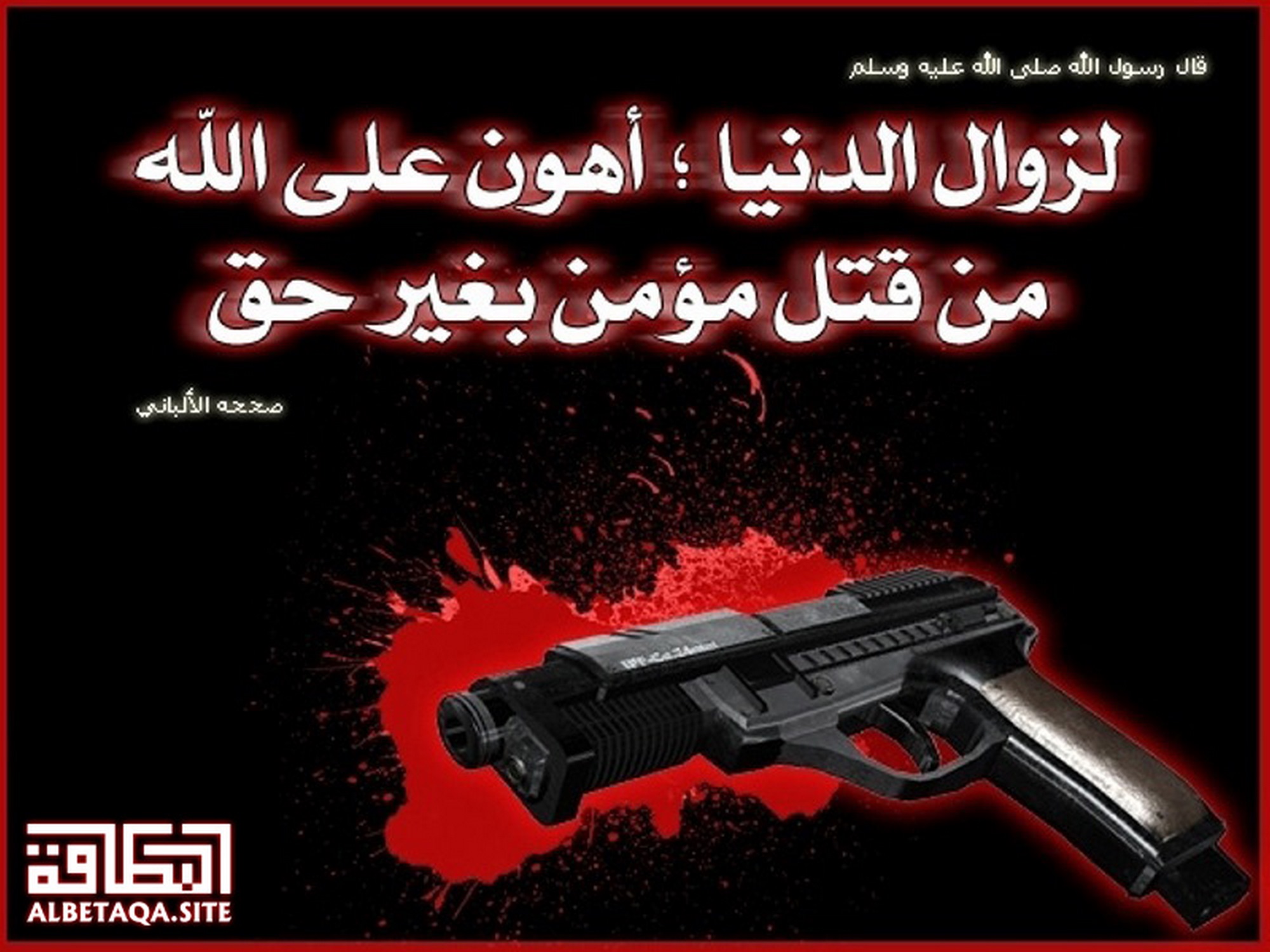 (لزوال الدنيا أهون على الله من قتل مؤمن بغير حق). صححه الألباني