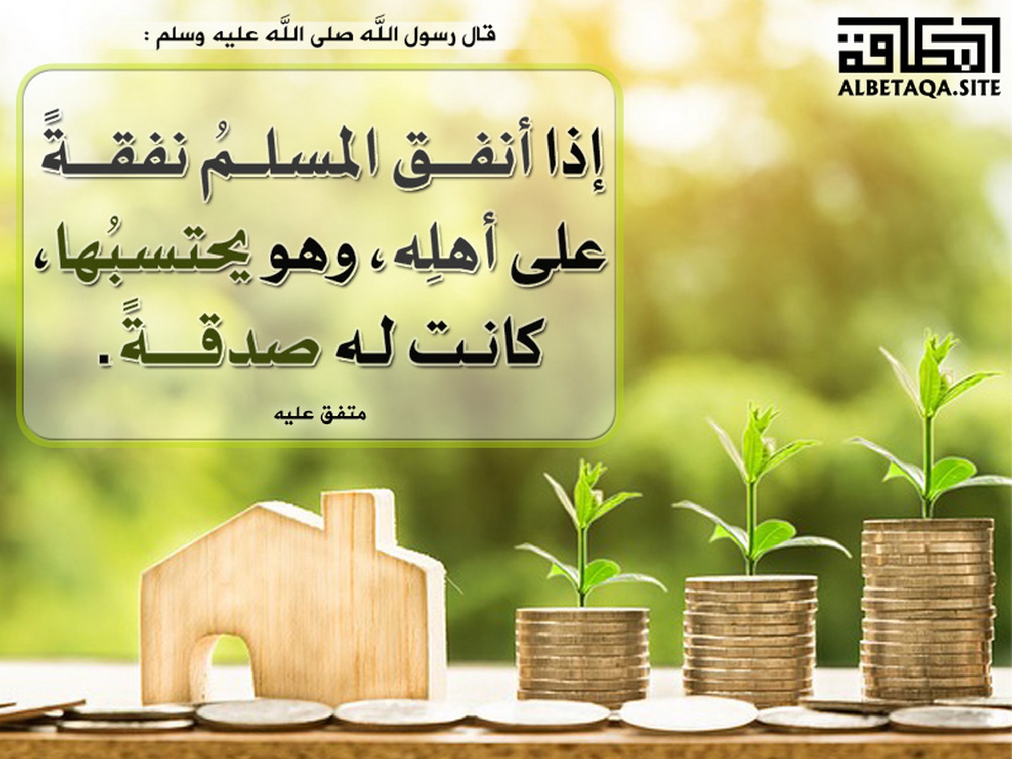 (إذا أنفق المسلم نفقة على أهله، وهو يحتسبها، كانت له صدقة). متفق عليه
